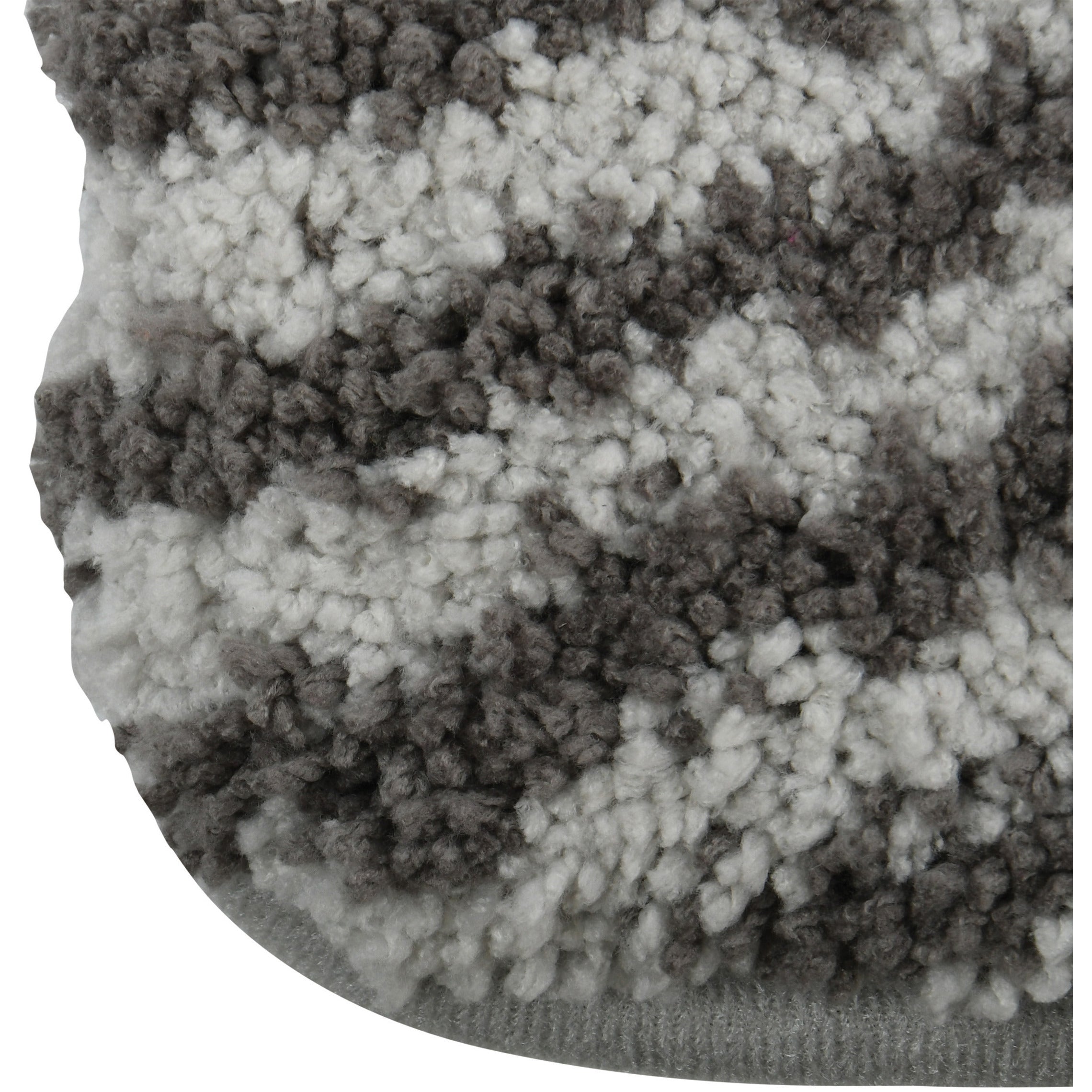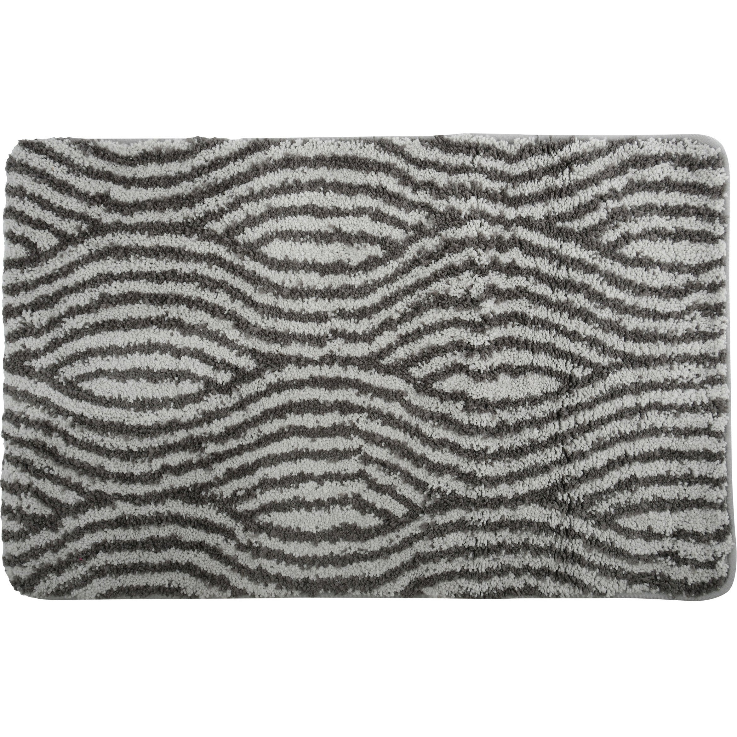 Badkamerkleed/badmat/badkamermat/tapijt/kleedje met anti-slip voor op de vloer in het toilet of badkamer in de kleur grijs/wit gestreept met afmetingen 50 x 80 cm in rechthoekige vorm. De badkamermat is gemaakt van microvezel(microfibre), hierdoor is de mat zacht, kan voldoende water absorberen en voelt dit lekker warm aan je voeten. De mat heeft een mooi Waves langharig patroon. Stevige kwaliteit matten/badkamerkleedjes voor op de vloer van uw badkamer. Wasbaar op 30 graden.