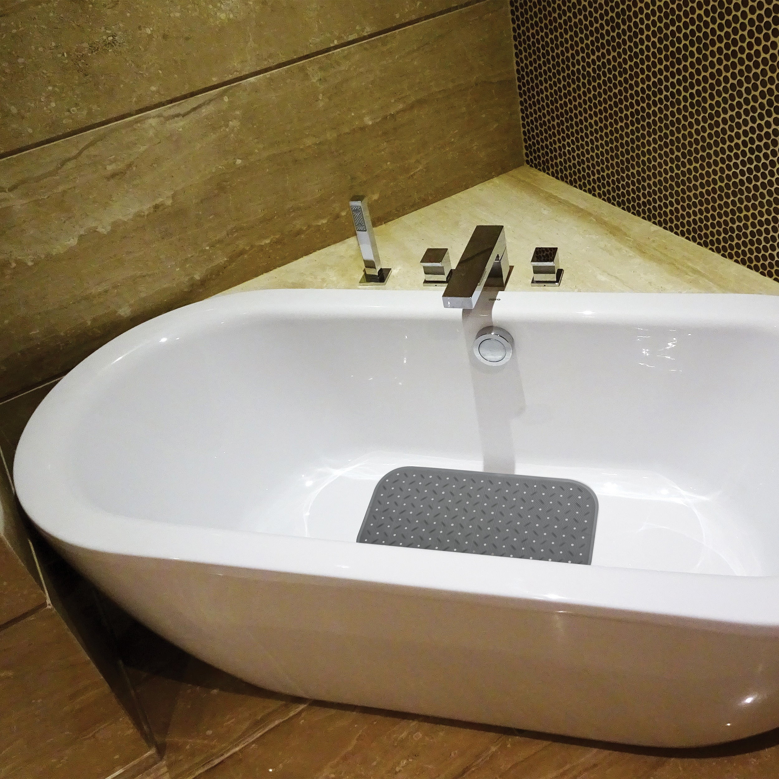 MSV Douche|bad anti-slip mat badkamer - rubber - grijs - 36 x 65 cm