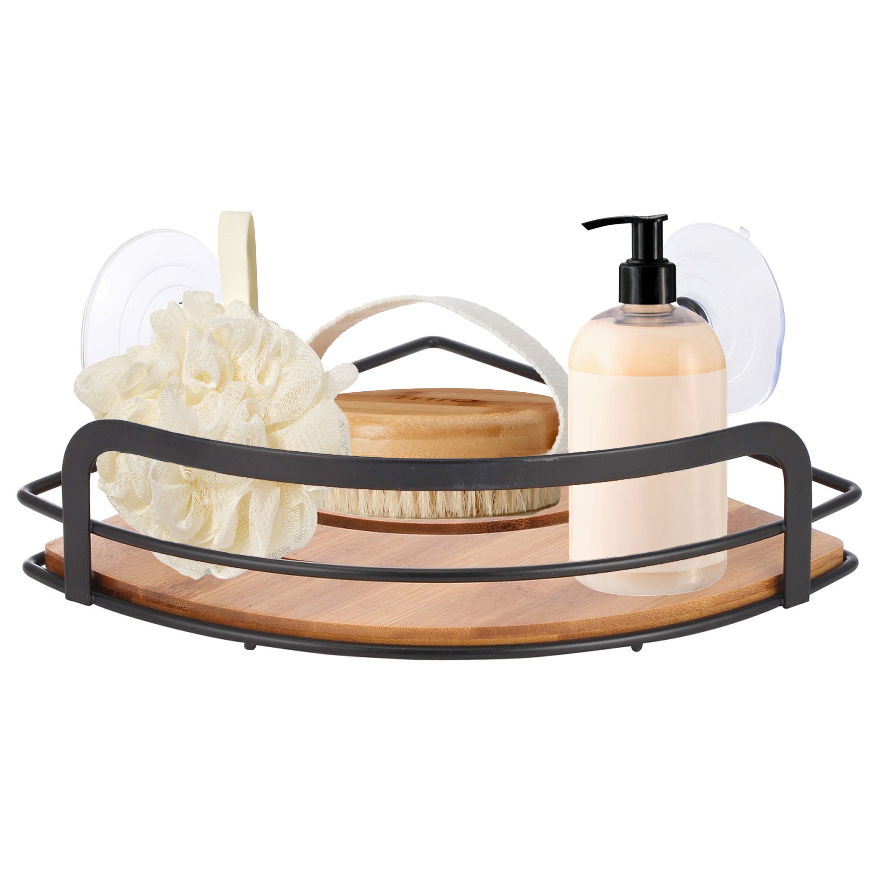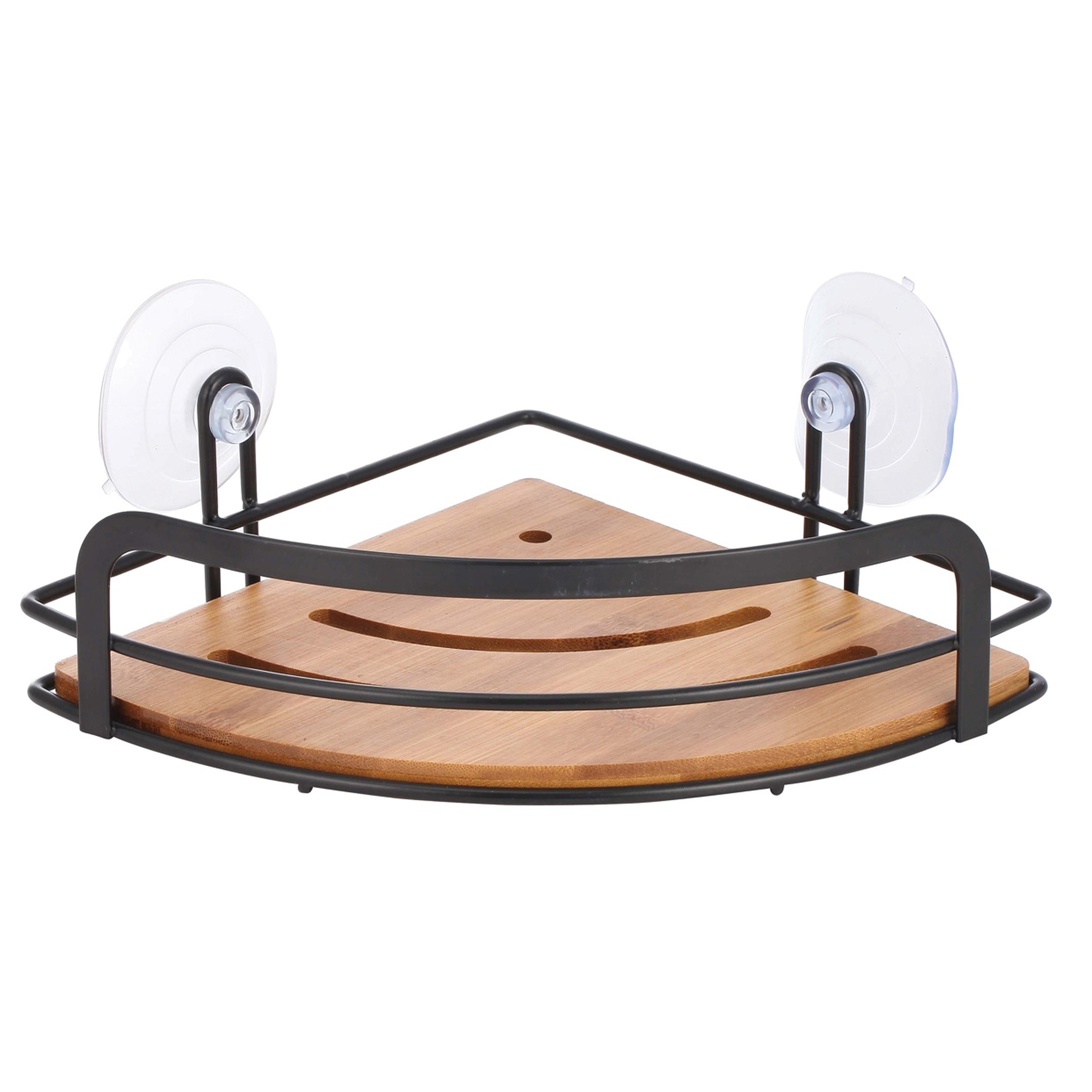 MSV doucherekje - zwart - 21 x 21 cm - metaal|bamboe - luxe