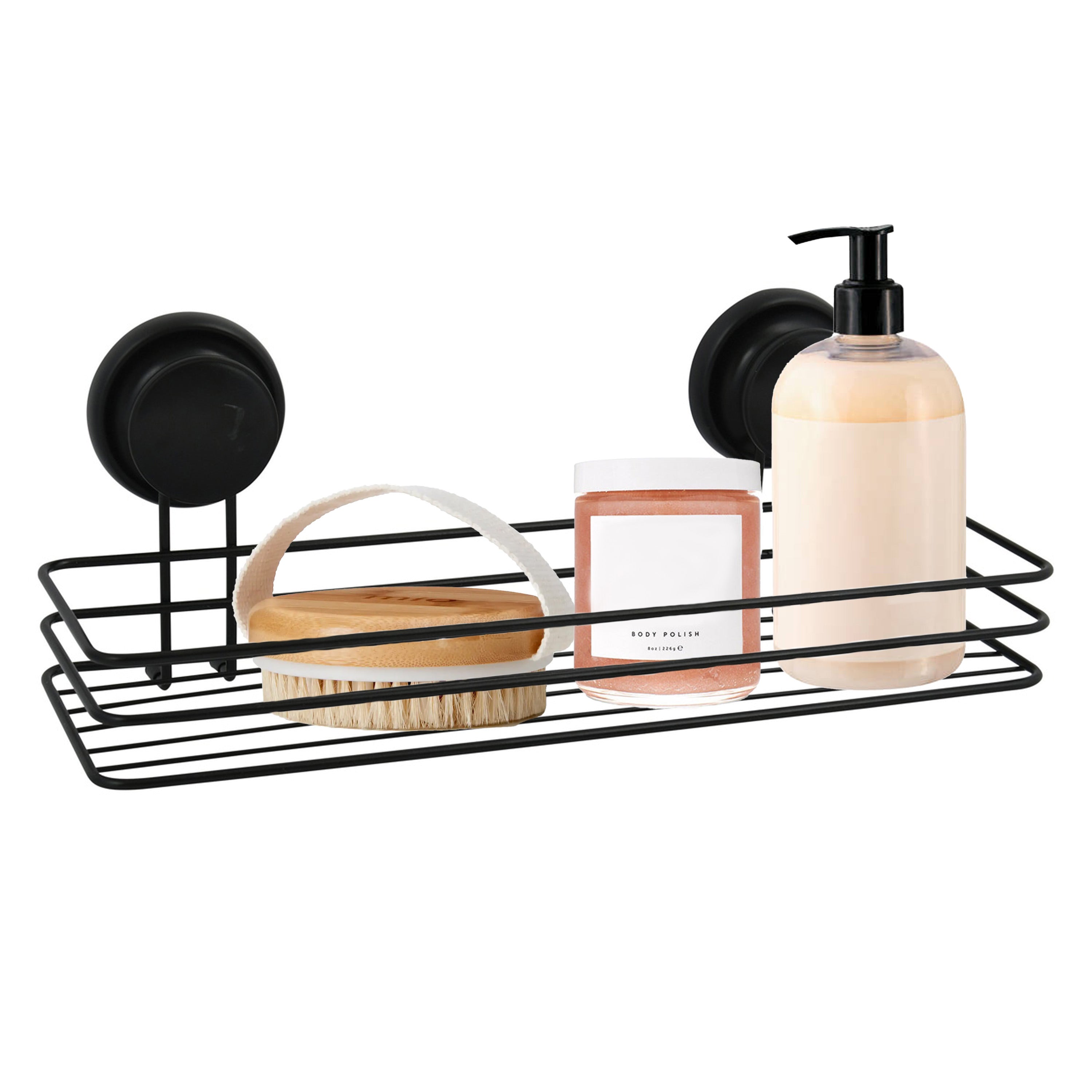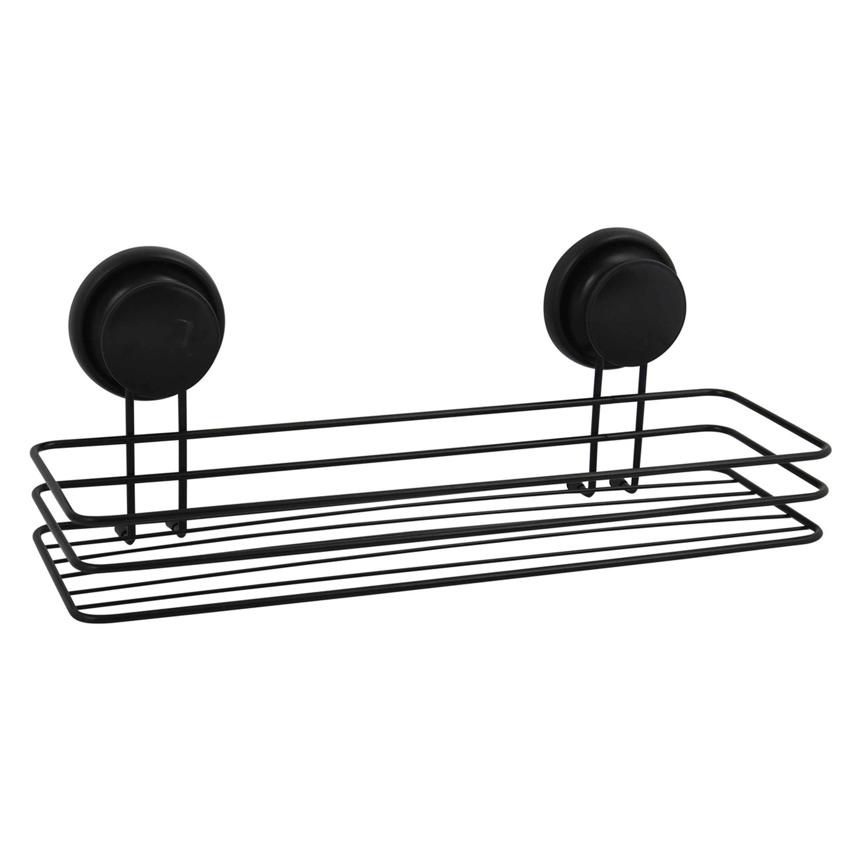 MSV doucherekje/badkamerrekje gemaakt van metaal in de kleur zwart. Handig rekje voor in de badkamer om o.a. zeep en shampoo flessen in te plaatsen. Verwijder de plakstrip en bevestig het mandje eenvoudig aan de wand. Materiaal: metaal. Formaat: ca. 35 x 13,5 x 13,5 cm. Max. draaggewicht: ca. 10 kg.