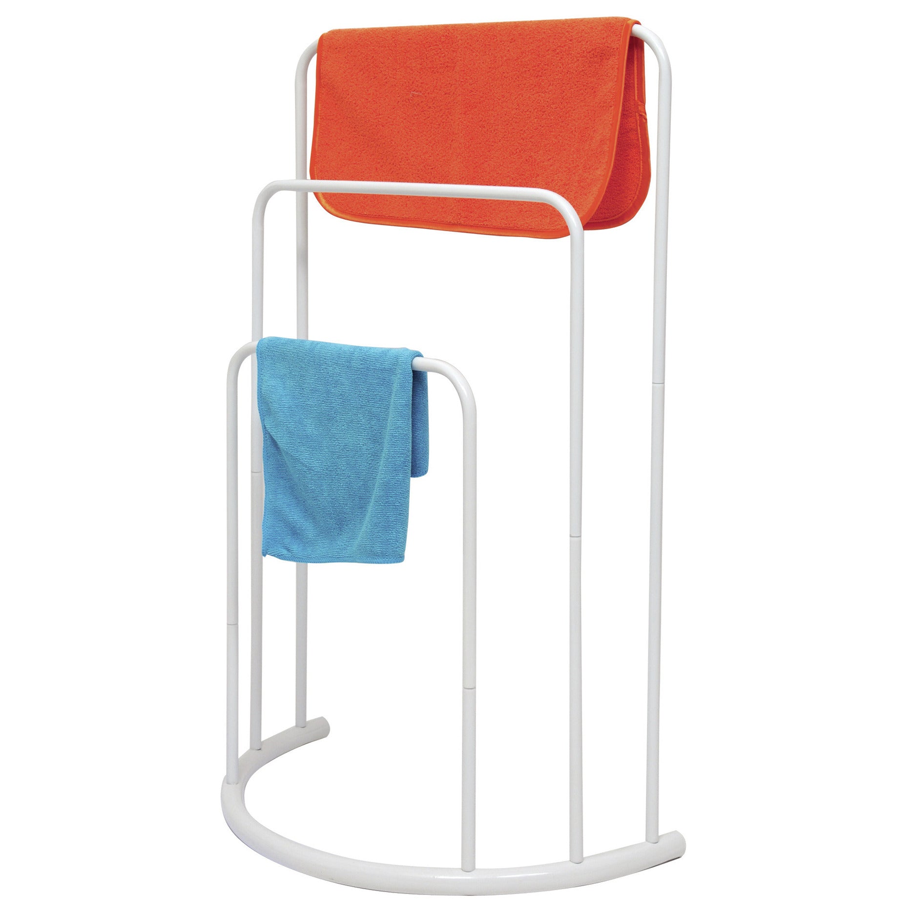 Handdoeken drogen rek voor in de badkamer, in de kleur wit, gemaakt van chroom metaal. Afmetingen: B50 x H75 x D26 cm. Dit handdoeken ophang en drogen rek heeft 3 ophang opties. U dient het rek zelf in elkaar te zetten volgens gebruiksaanwijzing. Past in elke sfeer of type badkamer.