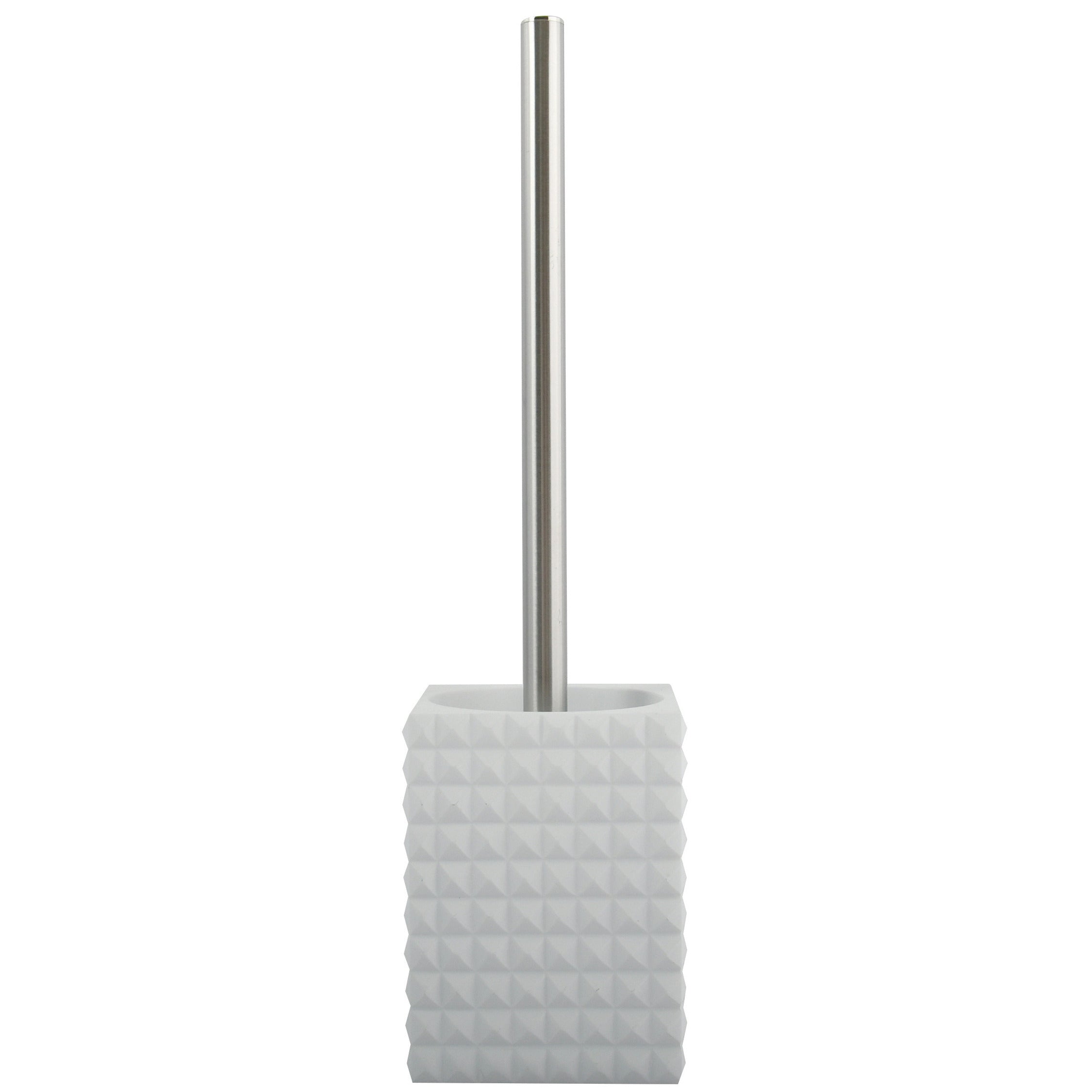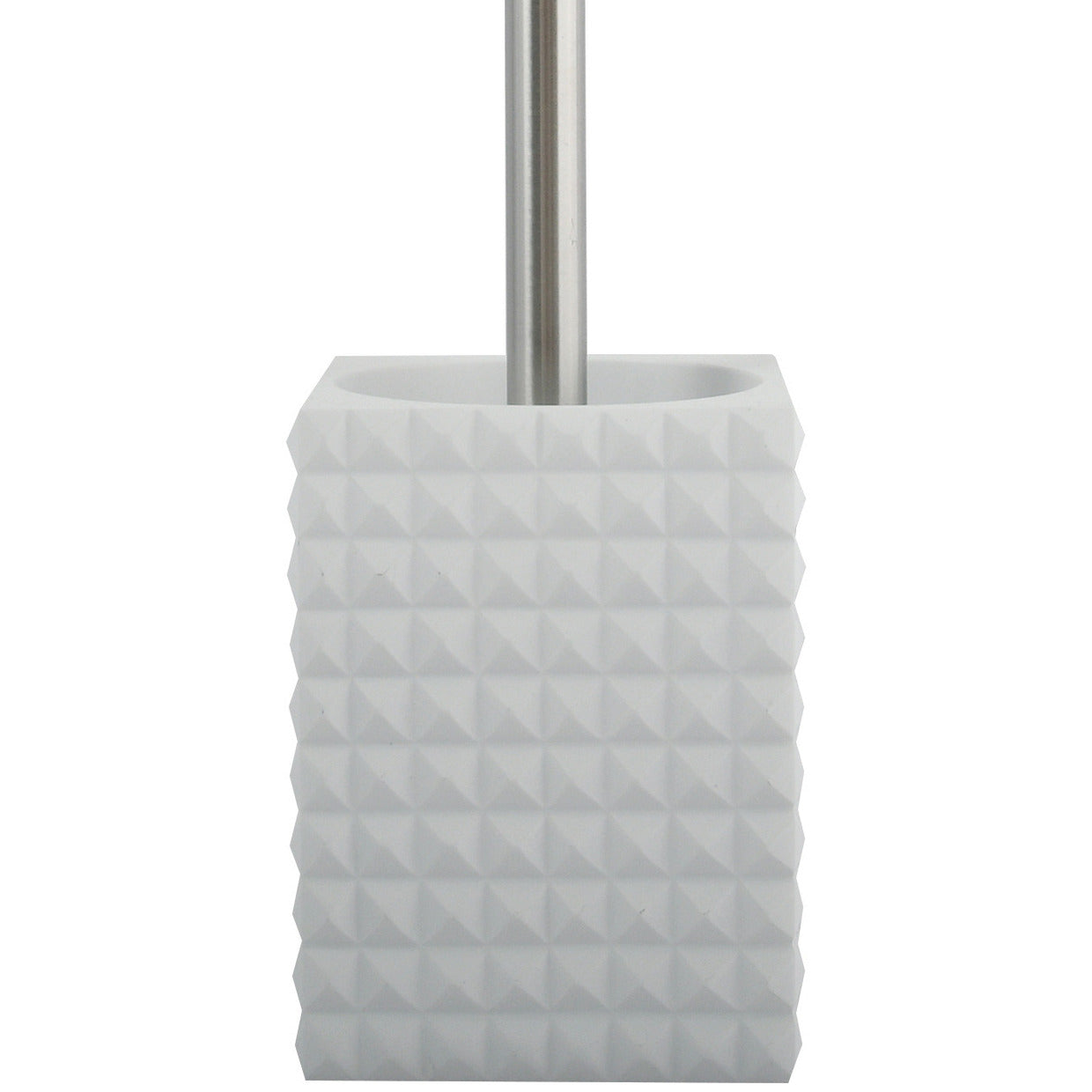 MSV Toiletborstel houder Kubik - kunststeen - wit|zilver - 37 cm