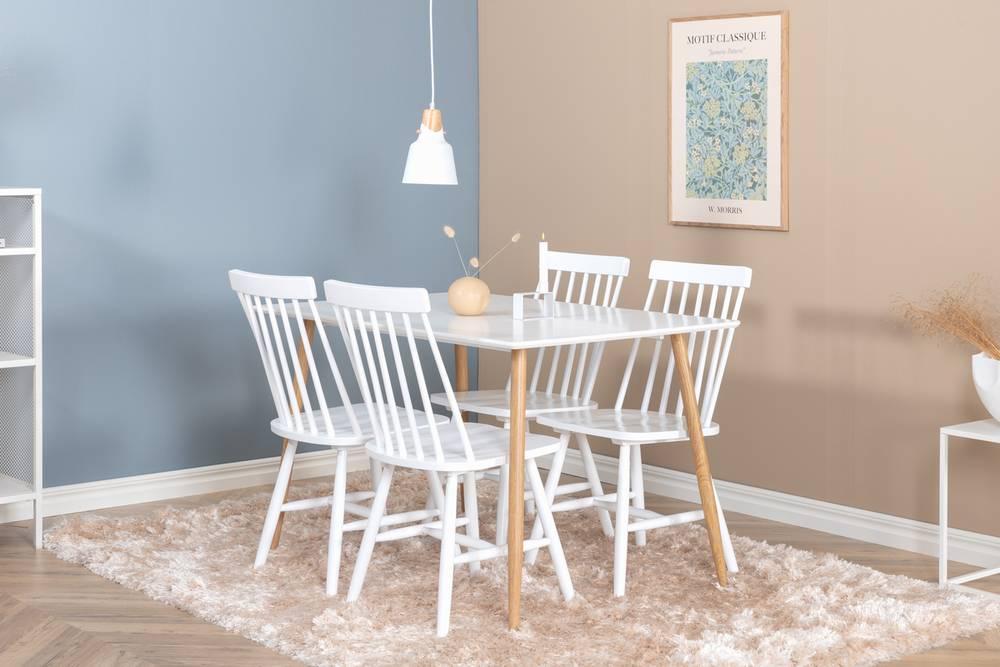 De hoogte van de zitting, gemeten vanaf de vloer. De ideale zithoogte bevindt zich tussen de 40 en 46 cm. Je zit het lekkerst met een ruimte van ongeveer 20 cm, tussen de stoelzitting en de onderkant van het tafelblad.