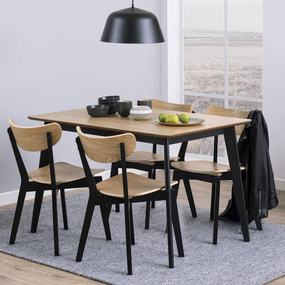 Ben je op zoek naar een licht, minimalistisch meubelstuk om van je eetkamer de echte ster van het hele huis te maken? De Gemini eettafelcollectie zou dan volledig aan je wensen moeten voldoen! De Gemini eettafel is een knipoog naar gebruikers die op zoek zijn naar beproefde, traditionele designoplossingen. Dit model heeft een minimalistisch design, vol charme, dat is verpakt in een vertrouwde vorm. Hierdoor past dit meubel perfect in de huidige trends en biedt het je een veilige basis voor het creëren van een tijdloze compositie van verrukkelijke elegantie. Het heeft vier hoge, slanke poten van zwartgeverfd rubberhout en een sierlijk, rechthoekig blad. Met dit meubel kun je bezoekende gasten of mensen die wachten op een maaltijd comfortabel laten zitten, zodat er plaats is voor iedereen. Zo wordt samenzijn een stuk aangenamer zonder dat je je zorgen hoeft te maken of iedereen wel past. Gemini's klassieke kleurstelling, een combinatie van neutraal zwart en een op natuurlijk hout geïnspireerd decor, maakt dit product zeer geschikt voor moderne kamers, vooral als je je laat inspireren door de rauwe industriële stijl.