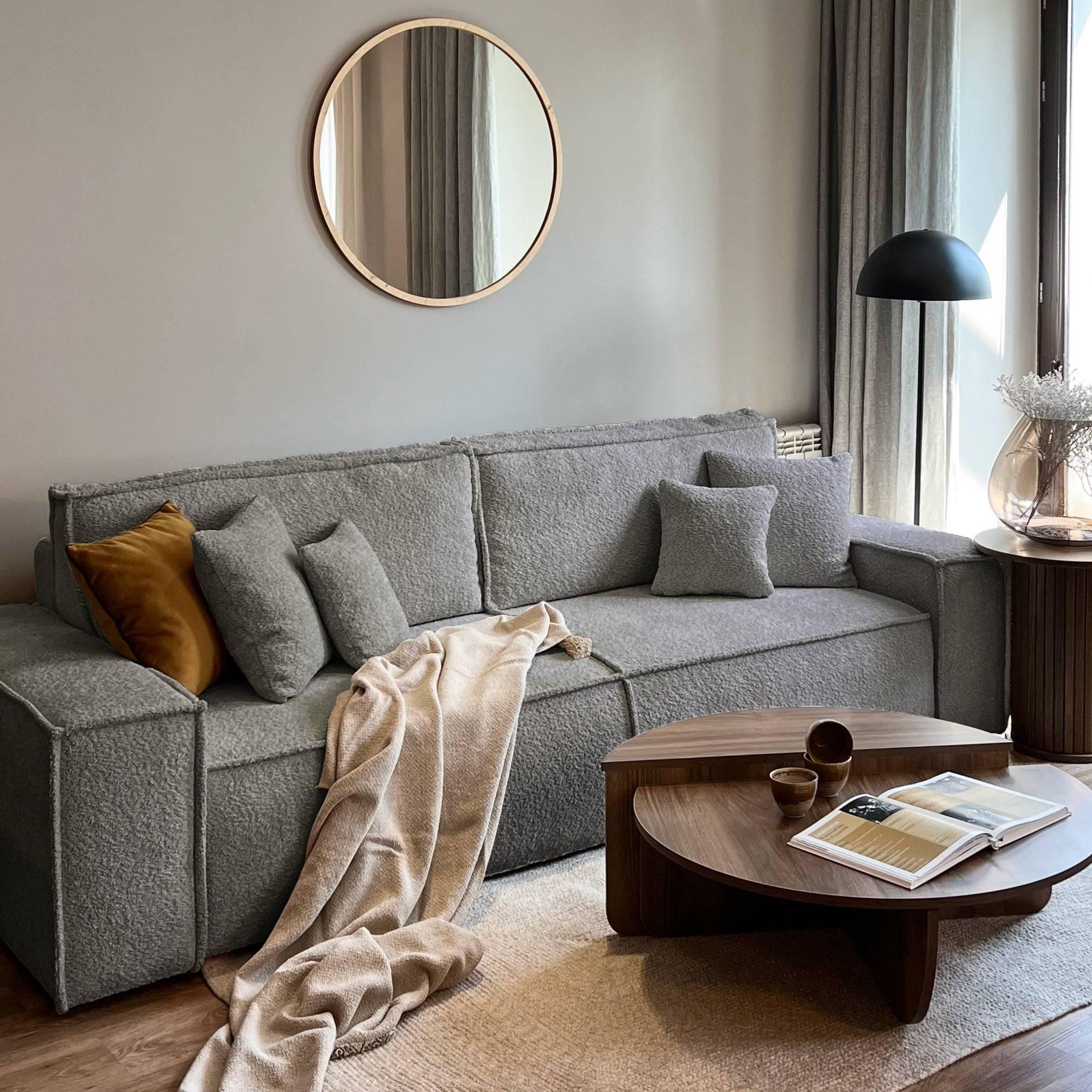 NADUVI Collection Galine 3-zitsbank met Slaapfunctie - Bouclé - Grijs