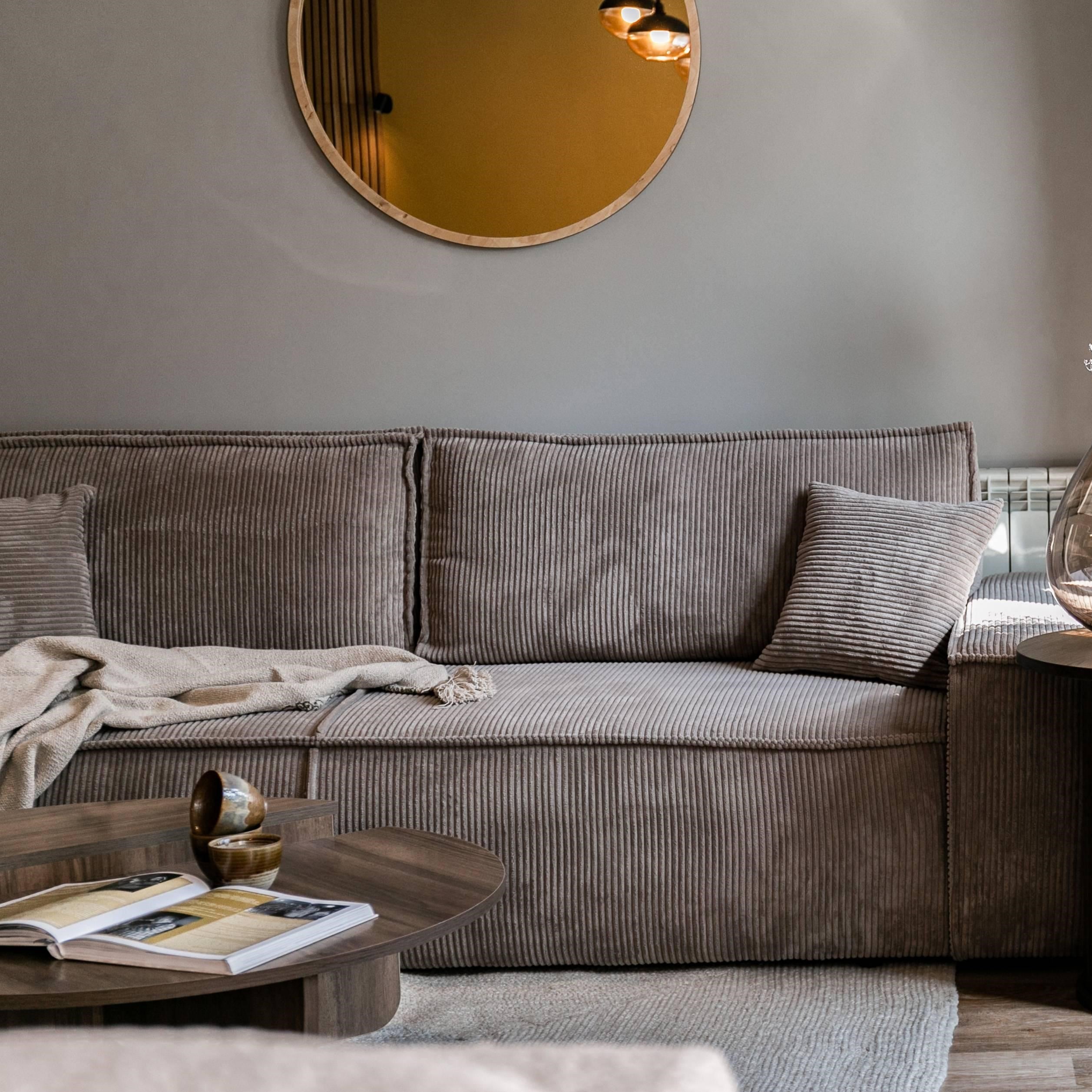 NADUVI Collection Galine 3-zitsbank met Slaapfunctie - Ribstof - Beige