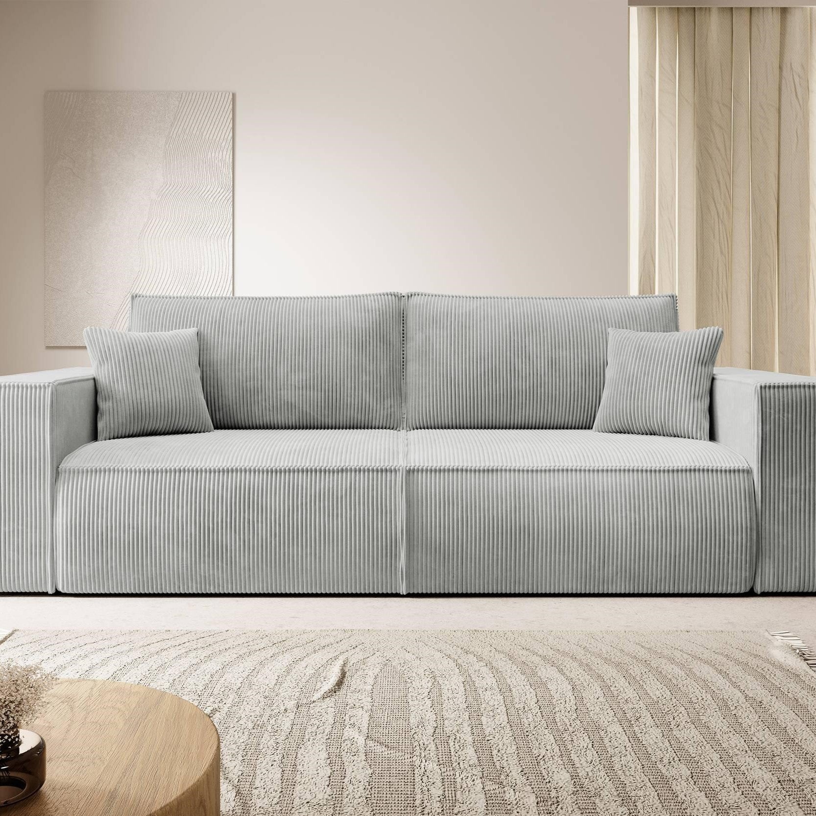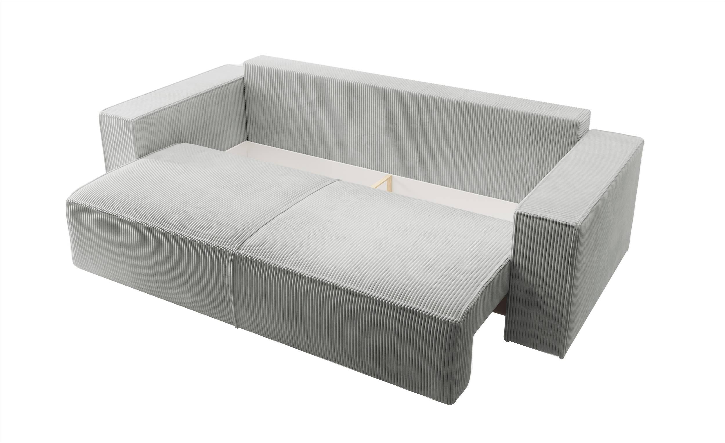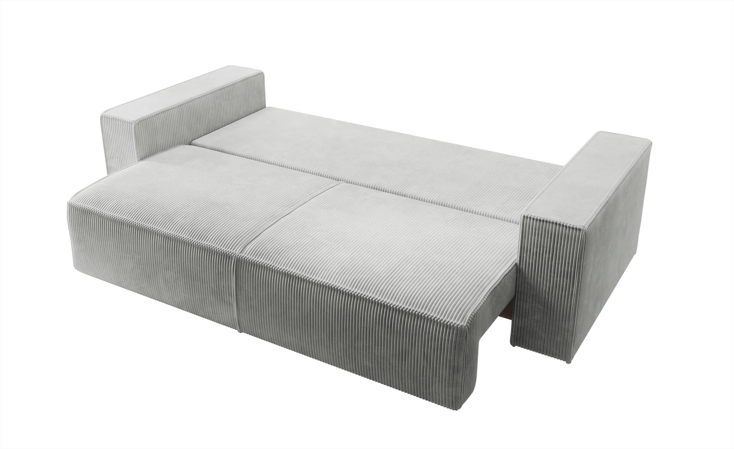 NADUVI Collection Galine 3-zitsbank met Slaapfunctie - Ribstof - Lichtgrijs