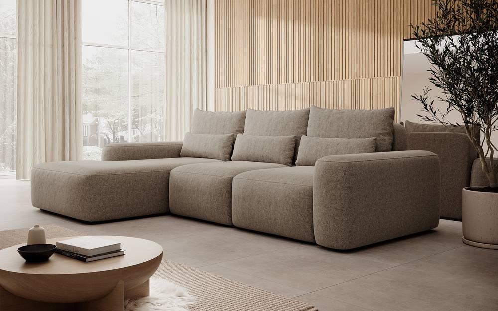NADUVI Collection Hoekbank met slaapfunctie Calvados links chenille