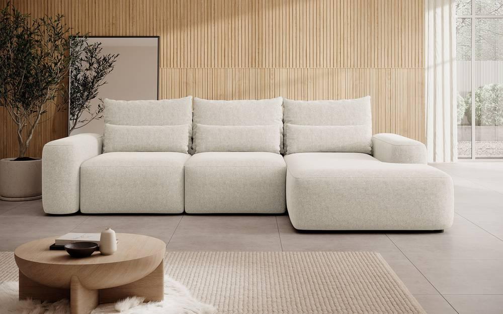 NADUVI Collection Hoekbank met slaapfunctie Calvados rechts chenille
