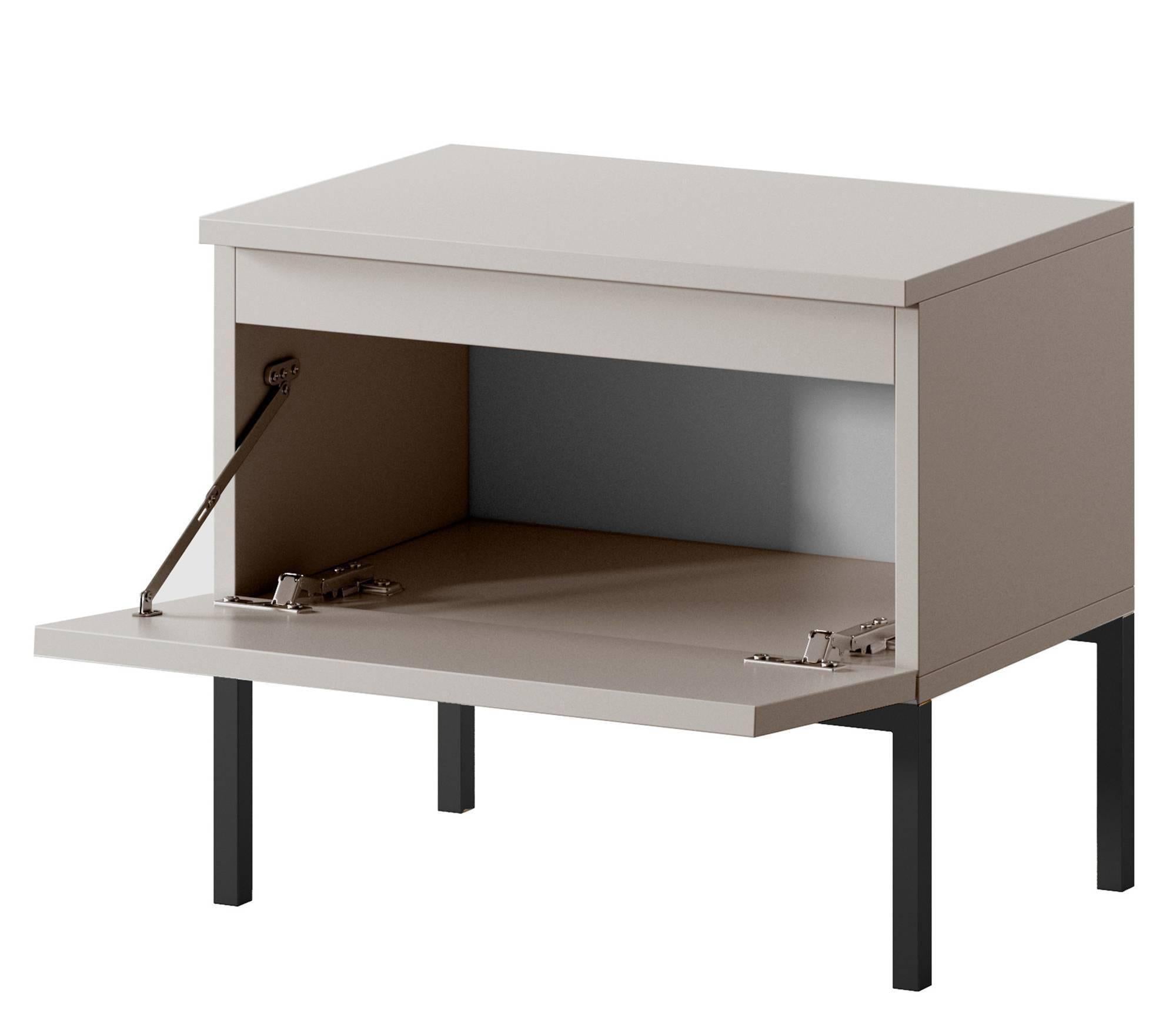 Het nachtkastje Kate kenmerkt zich door haar eenvoudige vorm en elegante stalen onderstel. Dit nachtkastje heeft een warme uitstraling dat mooi wordt gecontrasteerd door het stalen onderstel. Dit zorgt ervoor dat de Kate een goede toevoeging is aan jouw interieur! Het ruime opbergvak is perfect voor het opbergen van jouw spullen, dit zorgt voor een geordende slaapkamer. Als je voor het slapen graag een goed boek leest, biedt het blad meer dan genoeg ruimte voor een nachtlamp.