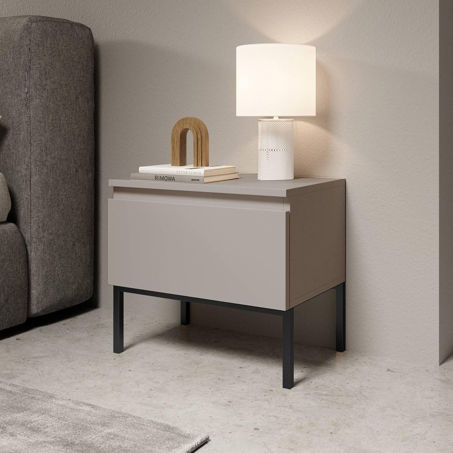 Berg op in stijl! Het Kate nachtkastje van NADUVI Collection heeft een moderne look dankzij de strakke vorm en een frisse touch door het slanke stalen onderstel. Je hebt genoeg ruimte om je mooiste accessoires te presenteren!