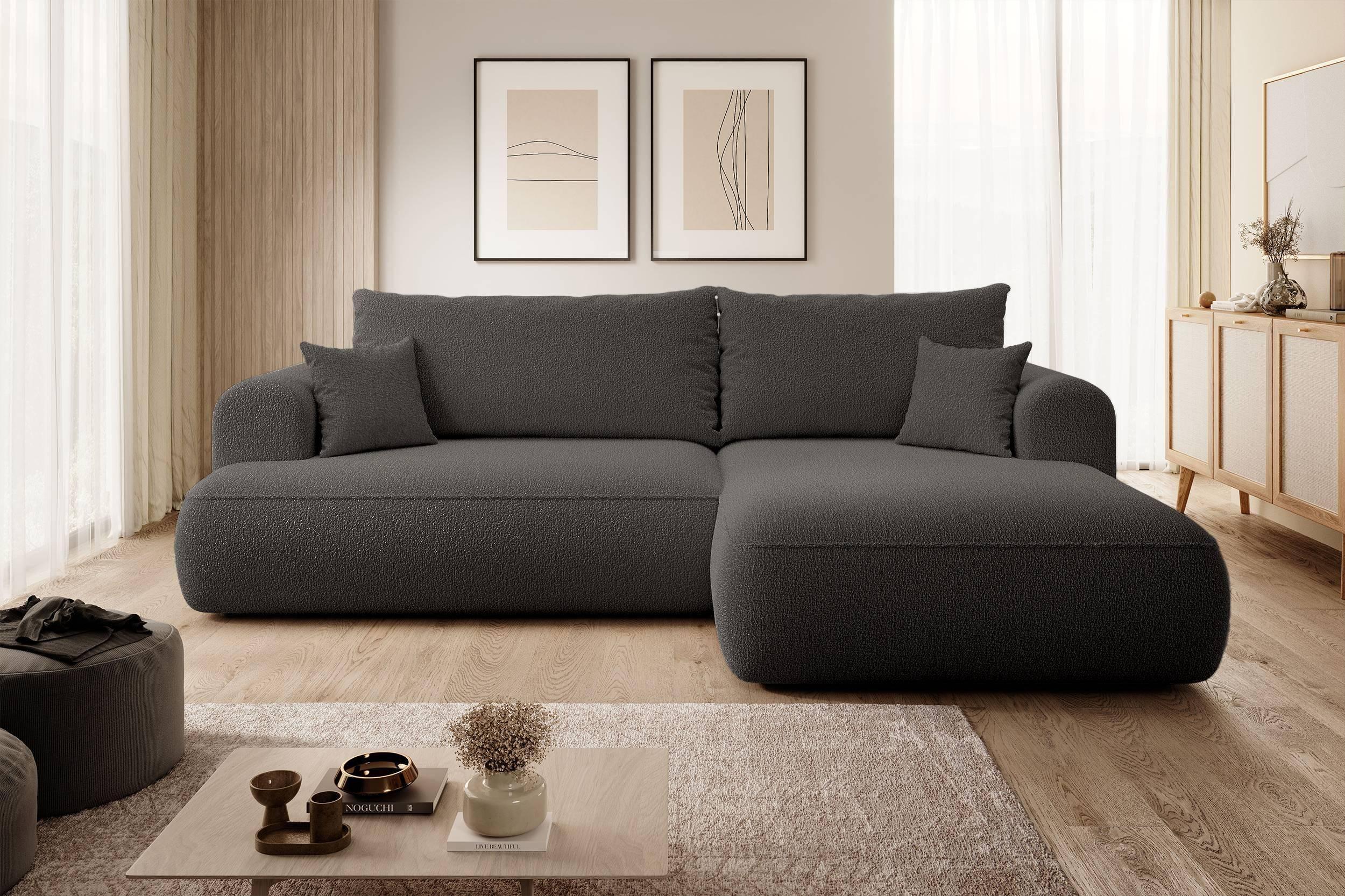 NADUVI Collection Philipa Hoekbank Rechts met Slaapfunctie - Bouclé - Antraciet