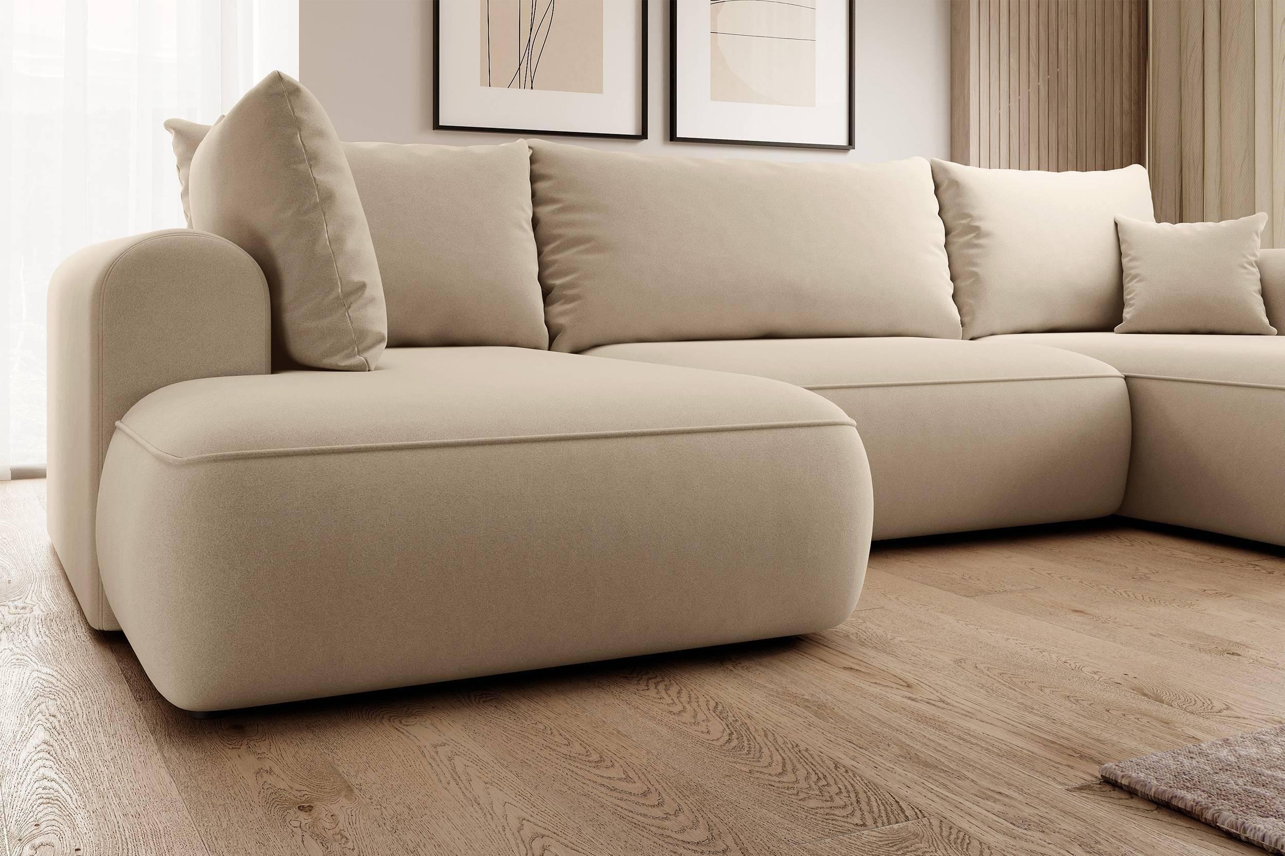 NADUVI Collection Philipa U-bank Links met Slaapfunctie - Velvet - Beige