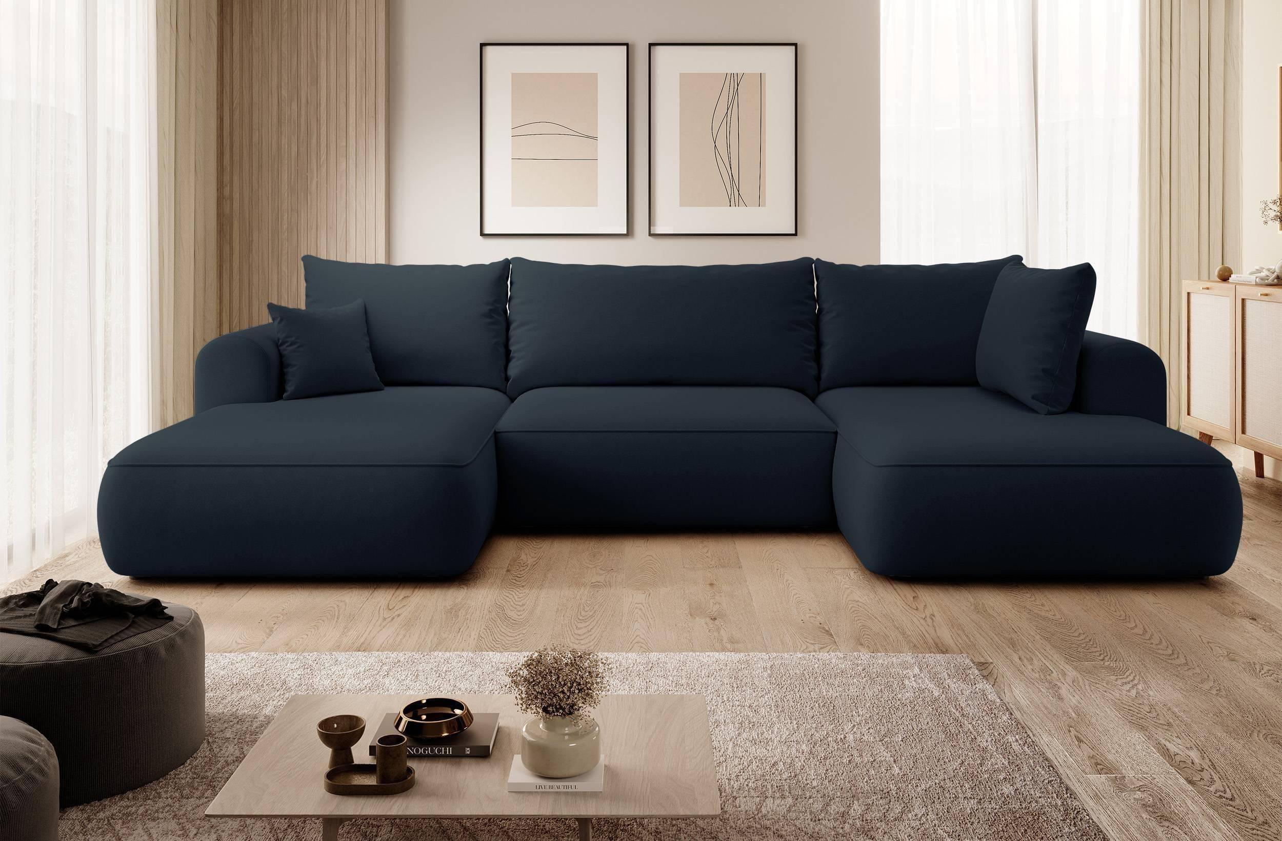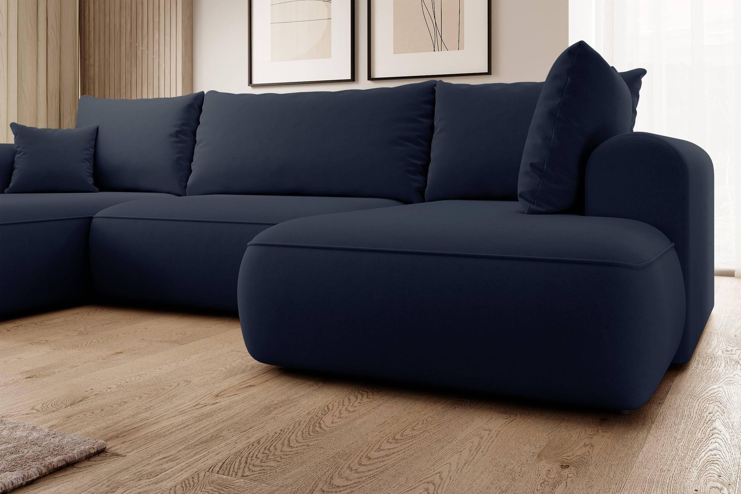NADUVI Collection Philipa U-bank Rechts met Slaapfunctie - Velvet - Donkerblauw