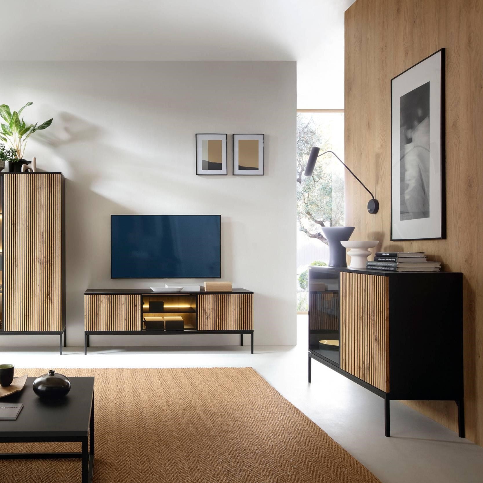 - Gemaakt van gepoedercoat staal, eikenhout, gelamineerd MDF en glas