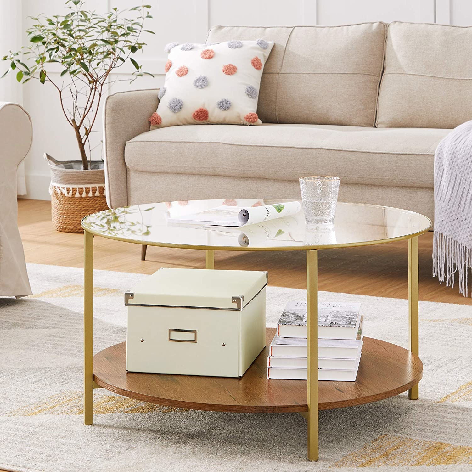 Nancy's Laramie Salontafel is een ronde salontafel met twee niveaus en een glazen bovenkant!