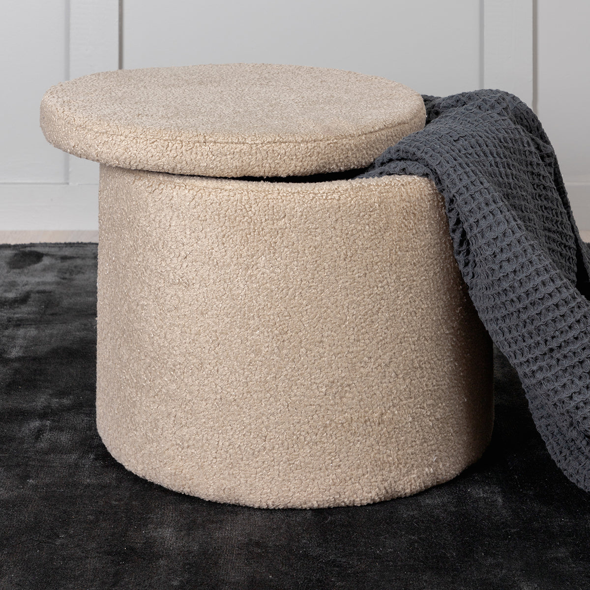 Nest living Amelia Poef Teddystof Beige - Met Opbergruimte