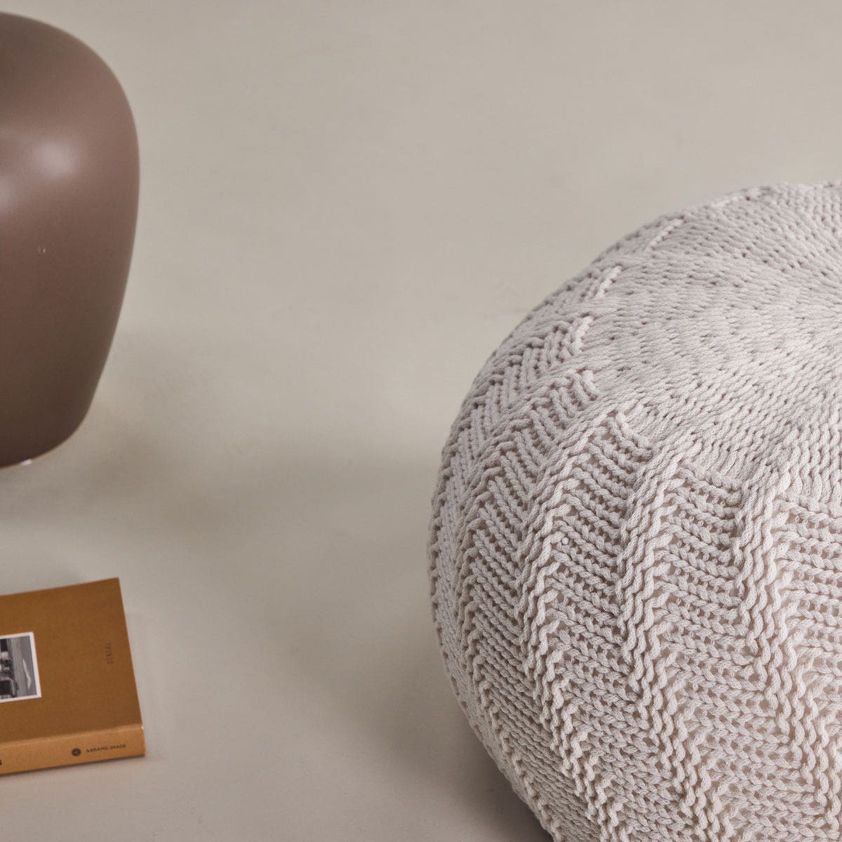 - Dankzij de gebreide stof heeft deze poef een zachte uitstraling