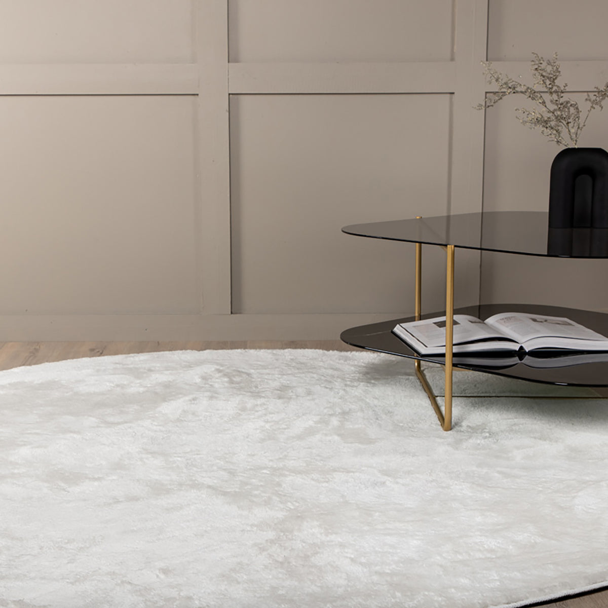 Dit zachte en trendy vloerkleed is perfect voor koude vloeren en bevroren voeten. Het tapijt is gemaakt van polyester en heeft een mooie glans die de kamer in een luxe sfeer hult. De witte kleur van het vloerkleed zorgt voor een frisse sfeer en een rustig gevoel. Door het praktische formaat past het vloerkleed perfect in de slaapkamer, voor de bank of onder de eettafel. Het Kelsey vloerkleed is ook in rechthoekige vorm verkrijgbaar.