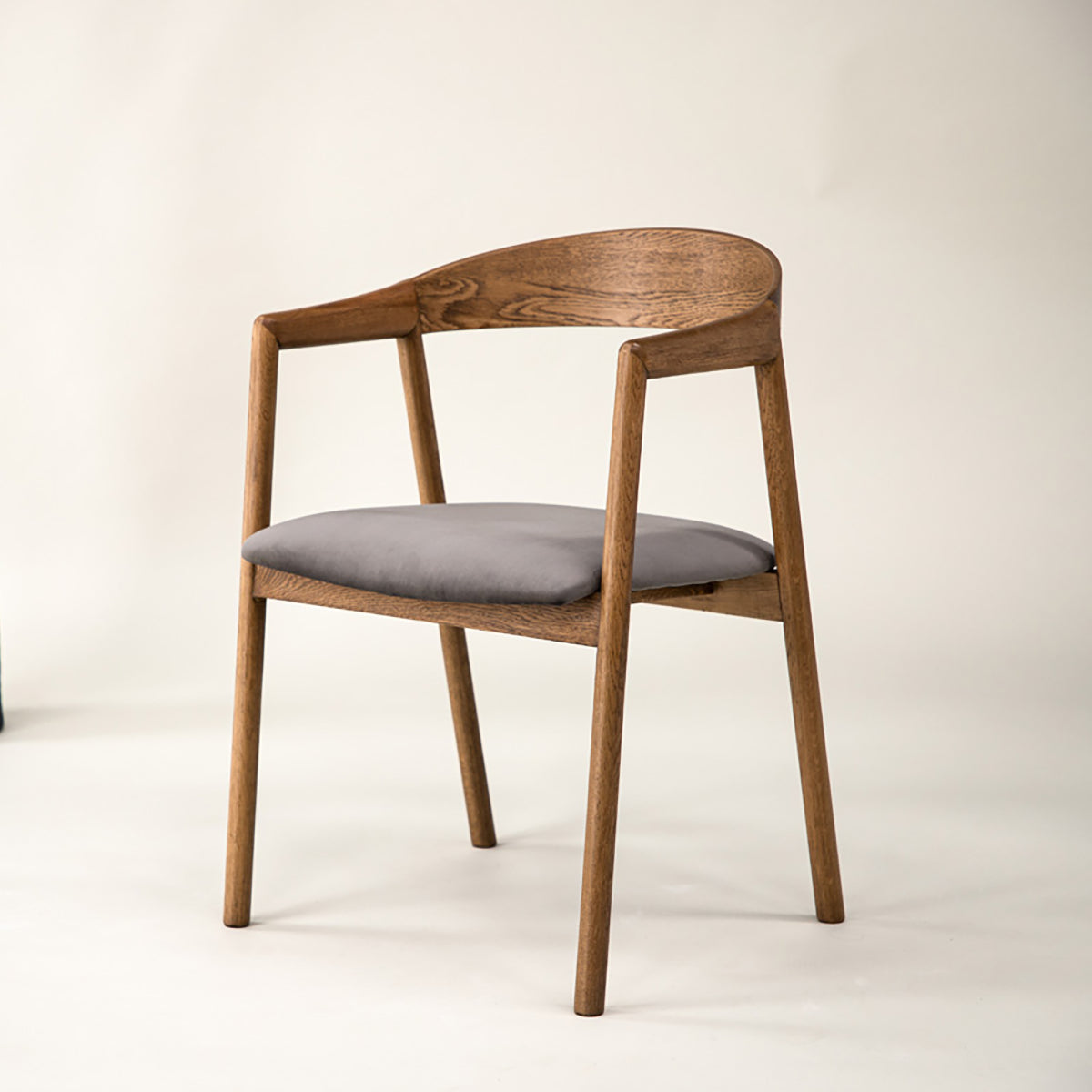 Nest living Maja Eikenhouten Eetkamerstoel Bruin - Grijs Zitkussen