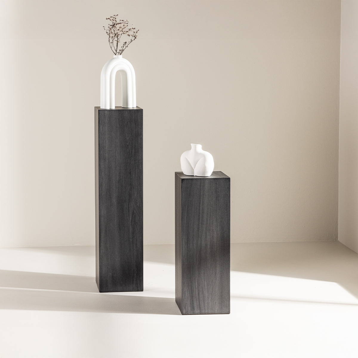 De kleinere variant van de Rana Decoratieve Zuil is perfect voor wie stijl en functionaliteit wil combineren in een compact formaat. Met een hoogte van 65 cm is deze zuil ideaal als plantentafel in de woonkamer, als bloemenstandaard in de hal of als handige bijzettafel naast je bank of bed. De natuurlijke uitstraling en strakke vorm passen perfect bij de serene sfeer van een Japandi interieur. Of je nu een vaas met droogbloemen, een kunstobject of een mooie plant erop zet - deze pilaar laat jouw favoriete item altijd tot zijn recht komen.