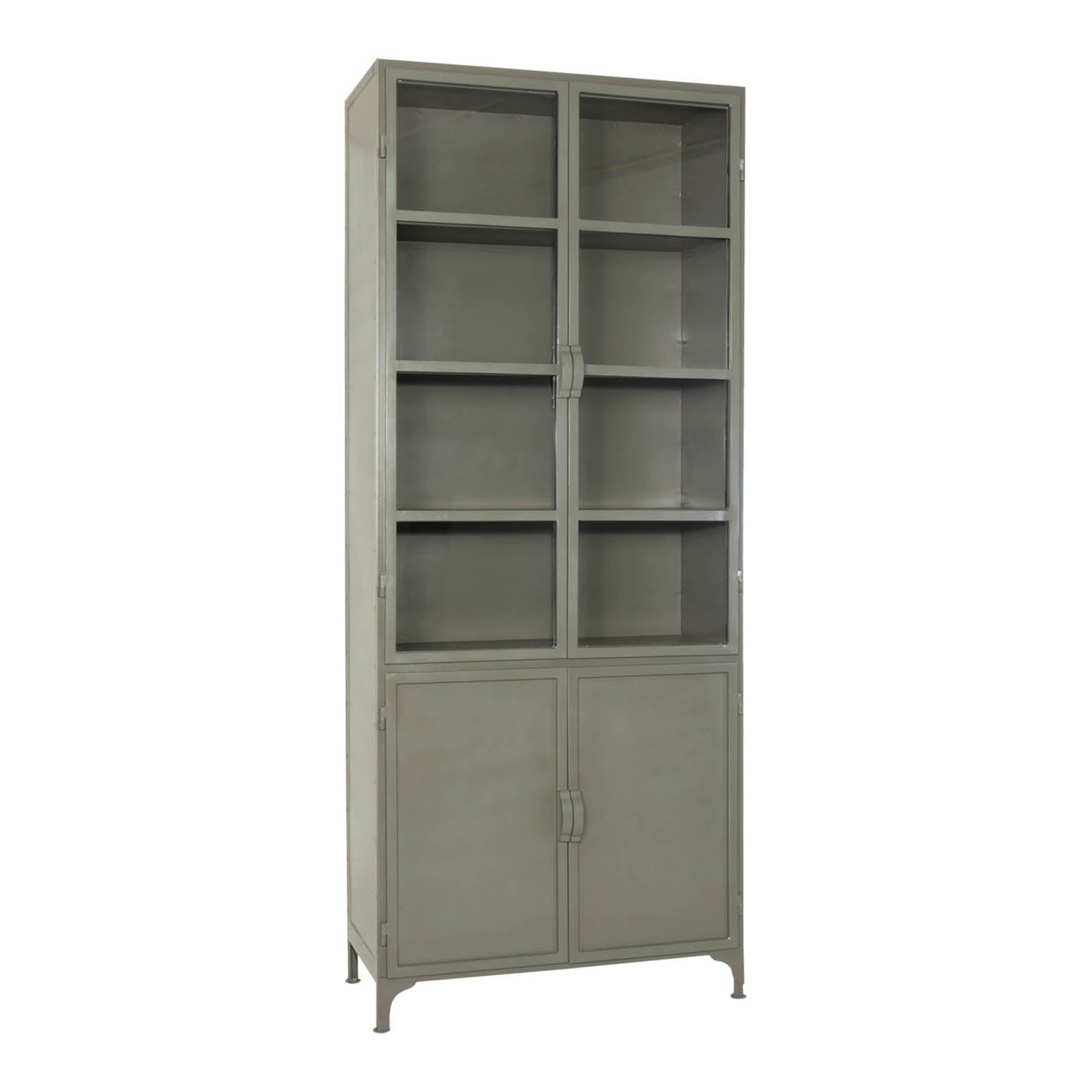 - Bovenste deuren zijn van glas met daarachter metalen planken