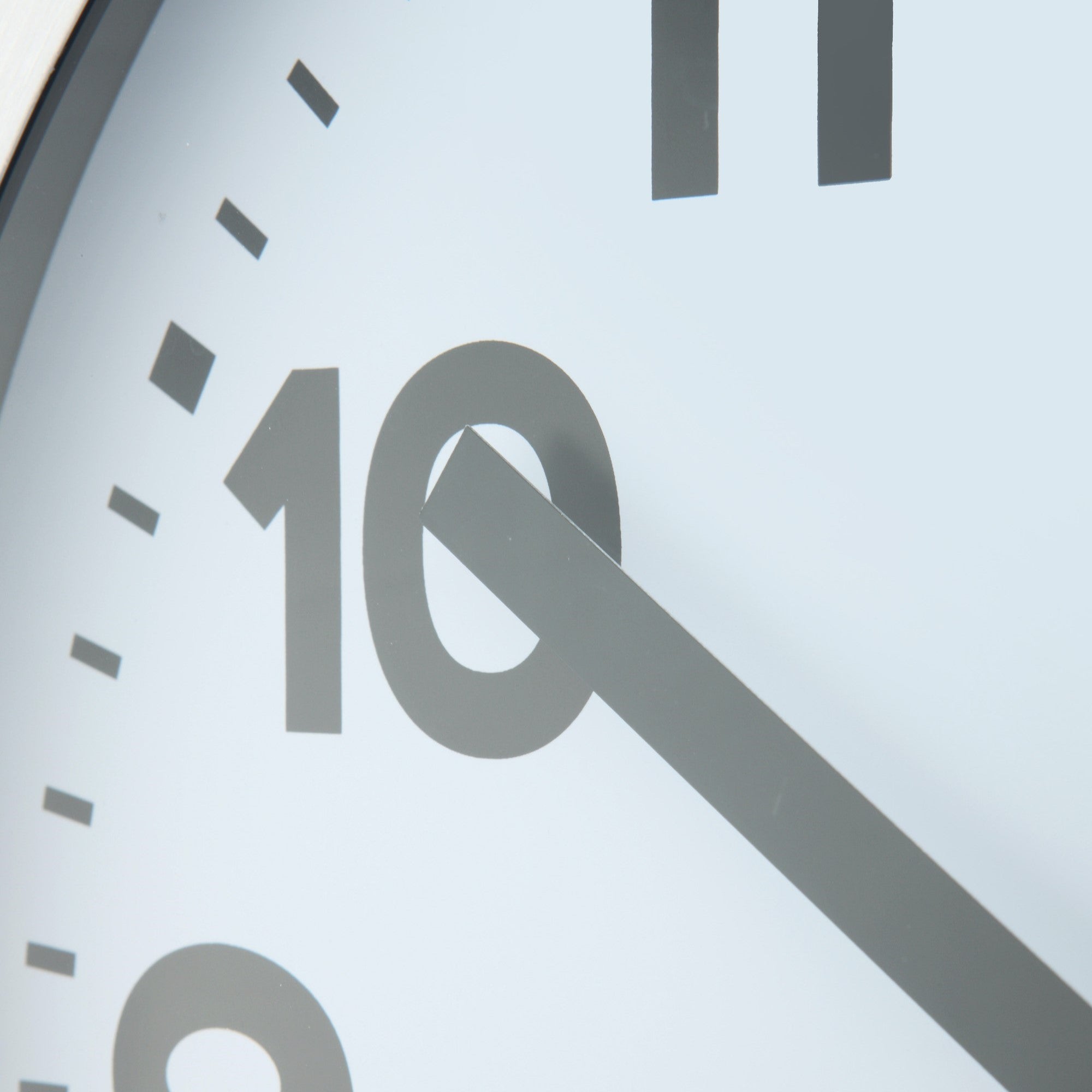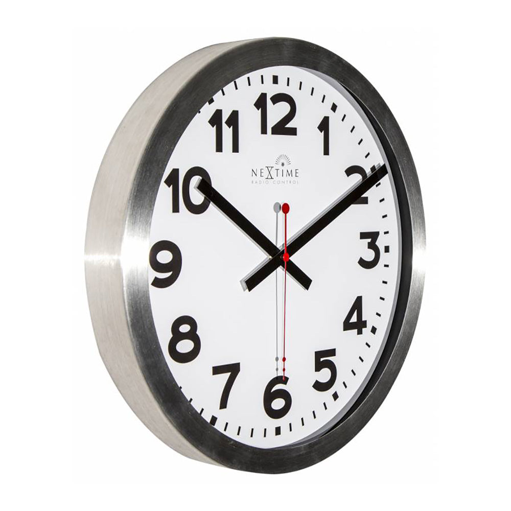 Deze Station wandklok is favoriet bij veel klokliefhebbers. De rode secondewijzer loopt geleidelijk rond waardoor de klok geen geluid maakt.