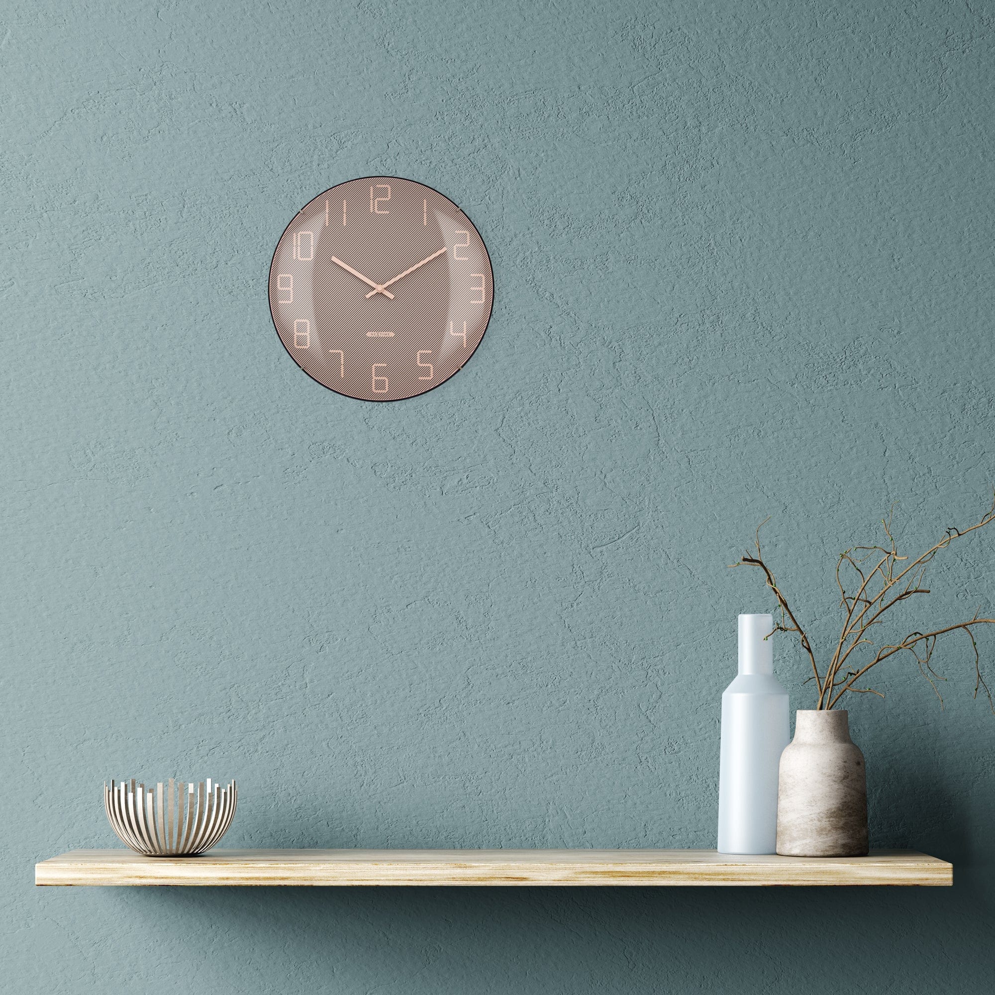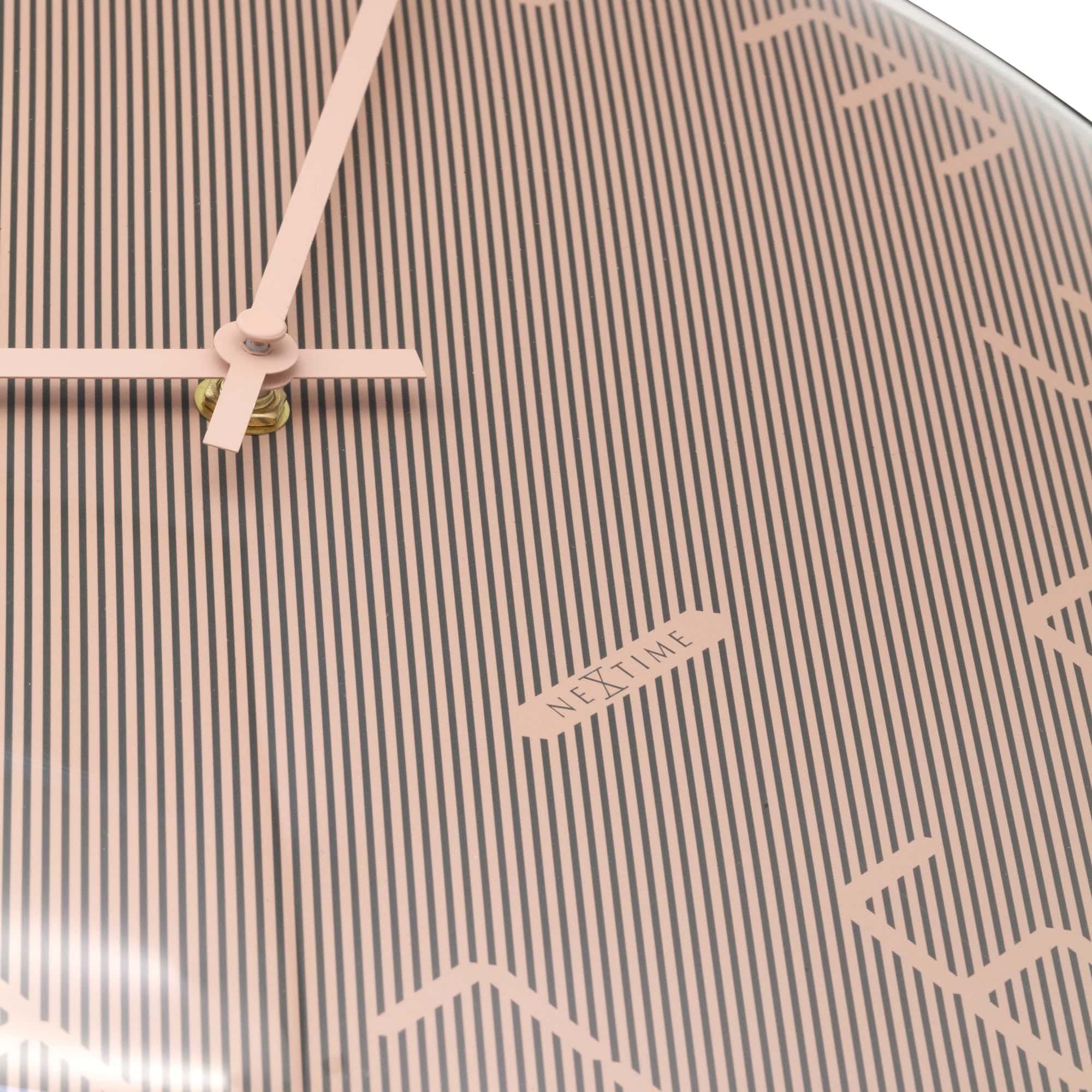 NeXtime - Wandklok 35cm Koepelvormig Glas Lens-Stil-Roze-Glas-NeXtime