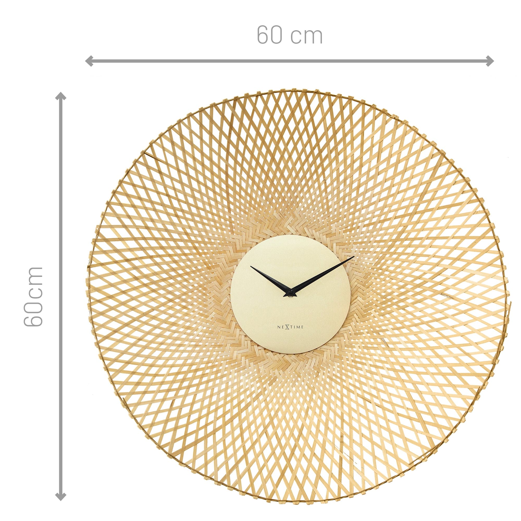 NeXtime - Wandklok 60 cm - Stille - Bruin - Bamboe - NeXtime 'Vortex'