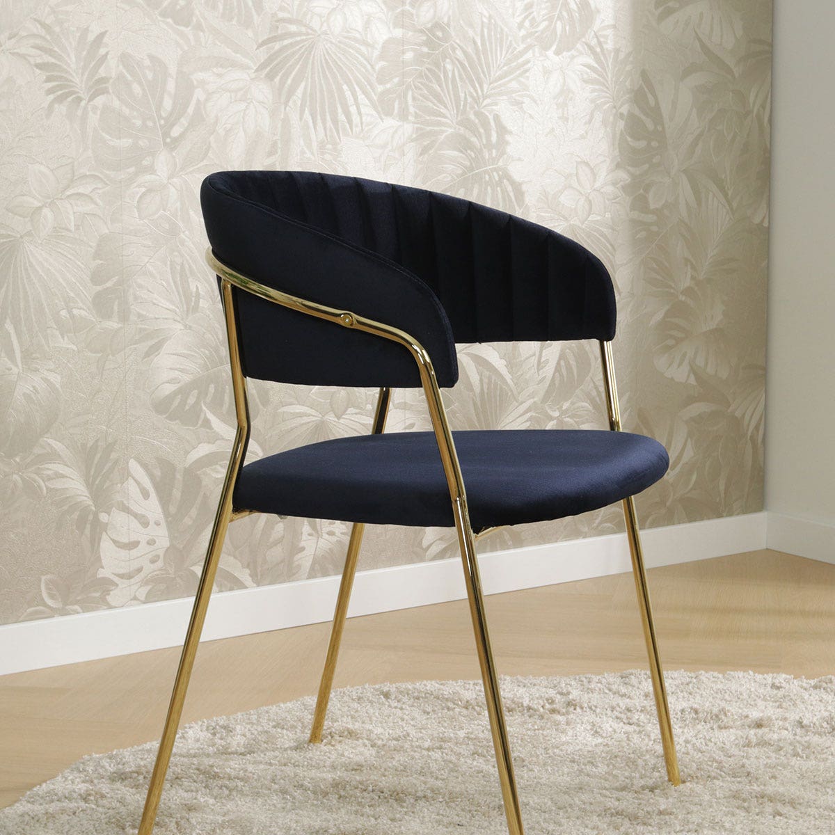 Nolon Alicia Velvet Eetkamerstoel Donkerblauw - Gouden Poten
