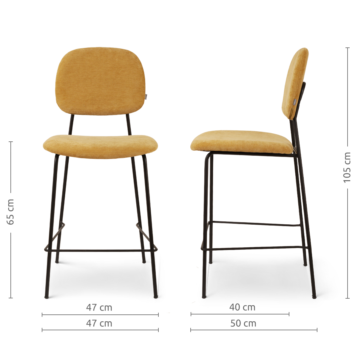De Jasmijn barkruk in warm oker geeft je kookeiland een vrolijke en stijlvolle touch. De zachte zitting zit heerlijk comfortabel, waardoor je makkelijk wat langer blijft hangen aan de bar. Het zwarte metalen onderstel geeft een strak en modern accent, en met de zithoogte van 65 cm is deze barkruk perfect voor kookeilanden.