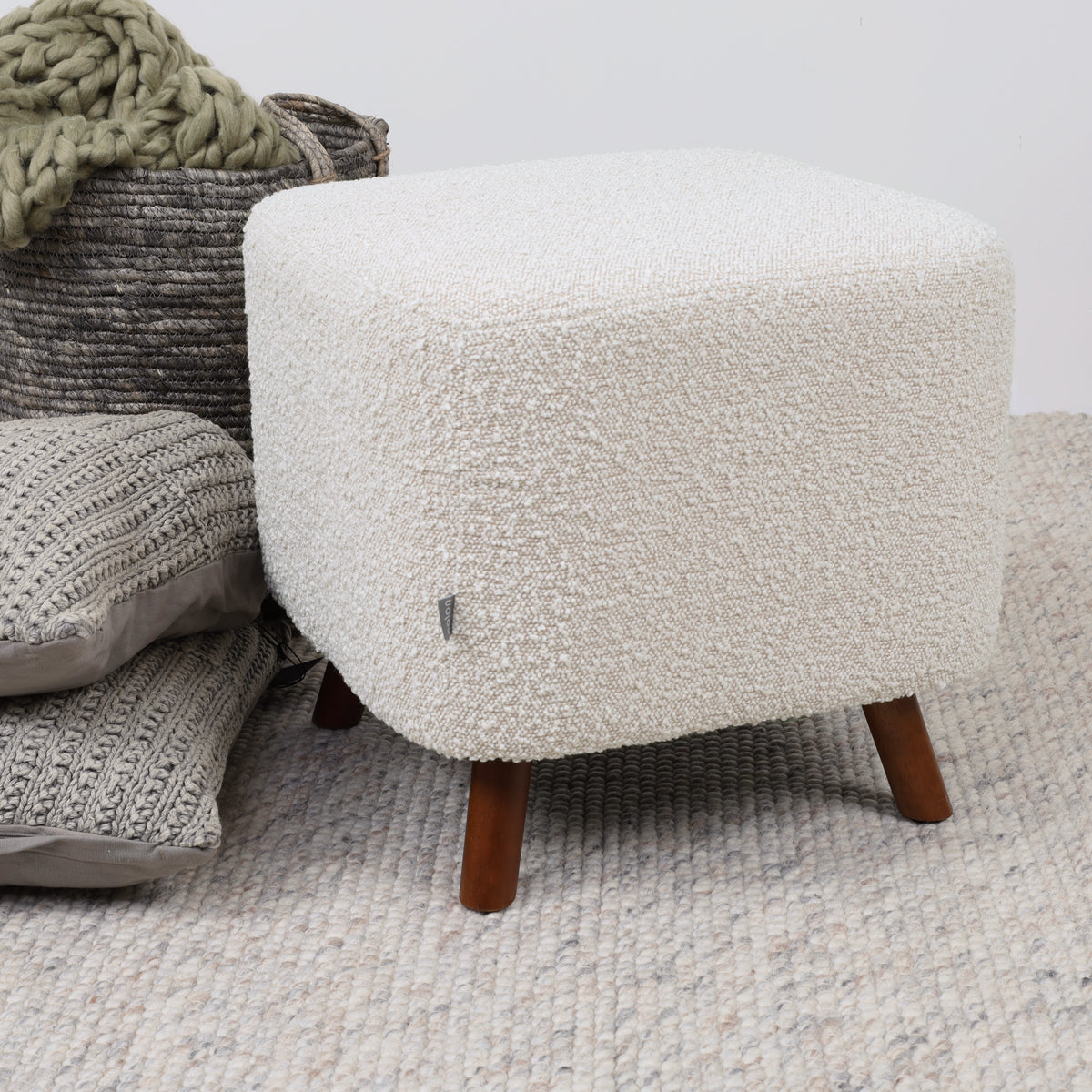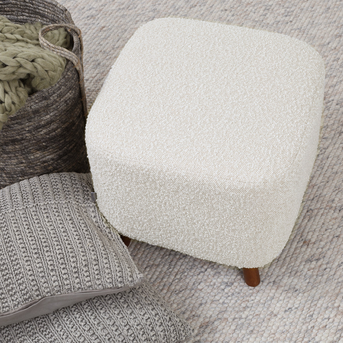Nolon Julia Vierkante Poef Bouclé Stof 44 x 44 cm - Beige