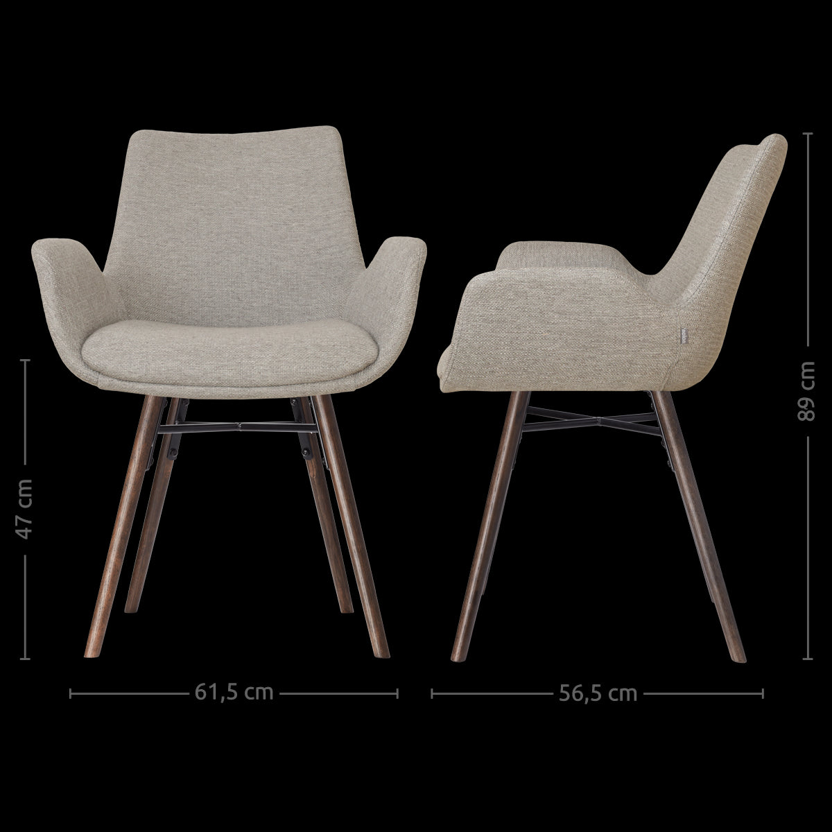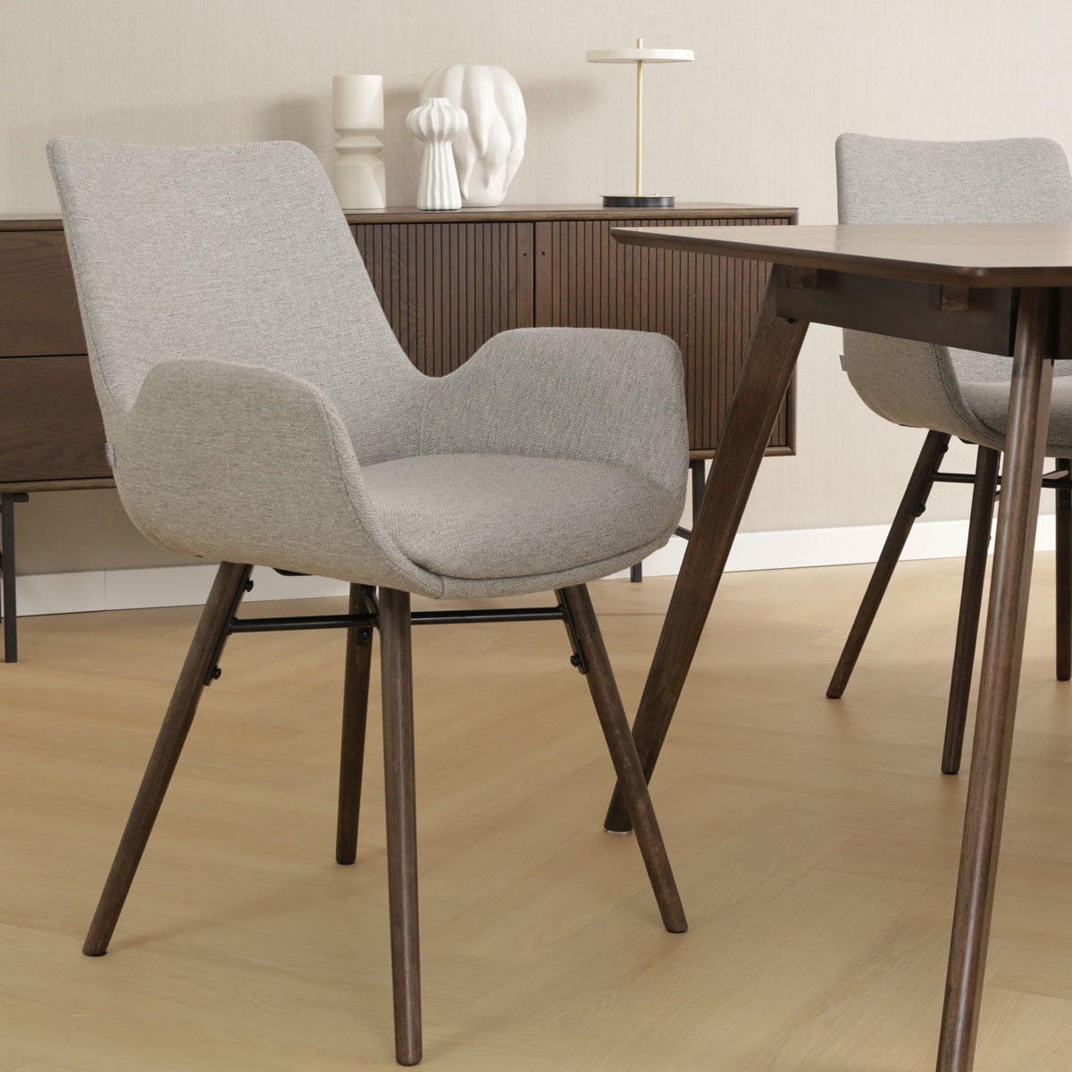 Of je nu een minimalistische, moderne inrichting of een meer traditionele stijl nastreeft, deze luxe eetkamerstoel past naadloos in diverse interieurs. De zitting van de Nena-Eef eetkamerstoel is bekleed met bouclé of luxe stof en de eikenhouten poten zijn voorzien van een walnoot kleur, wat zorgt voor een warme en stijlvolle uitstraling. Deze eetkamerstoel is bovendien ontworpen met armleuningen en een hoge rugleuning, waardoor het zitcomfort hoog is. Dankzij de iets lagere armleuningen past deze armstoel toch zorgeloos onder de meeste eettafels, terwijl je van een ontspannen zithouding geniet. Dit maakt de Nena-Eef de ideale stoel voor gezellige diners en urenlang natafelen met vrienden en familie.