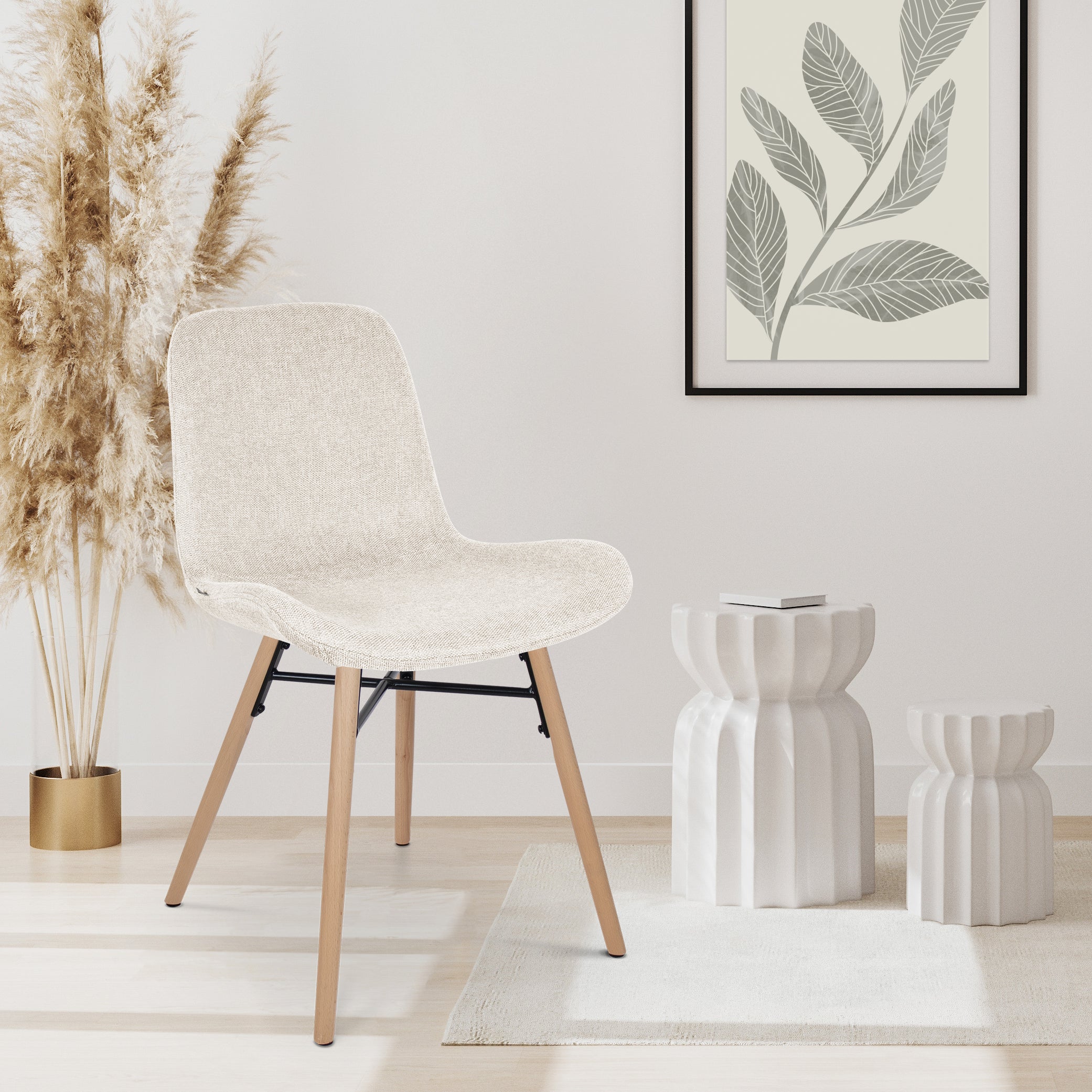 De zitting van deze eetkamerstoel is verkrijgbaar in een zachte stof. Het onderstel is gemaakt van hout en heeft als leuk detail in het midden een metalen kruis. De Nena kuipstoel heeft een modern en stijlvol design, dit komt door de combinatie van het houten onderstel met de metalen details. Hierdoor staat de Nena eetkamerstoel prachtig in verschillende woonstijlen.