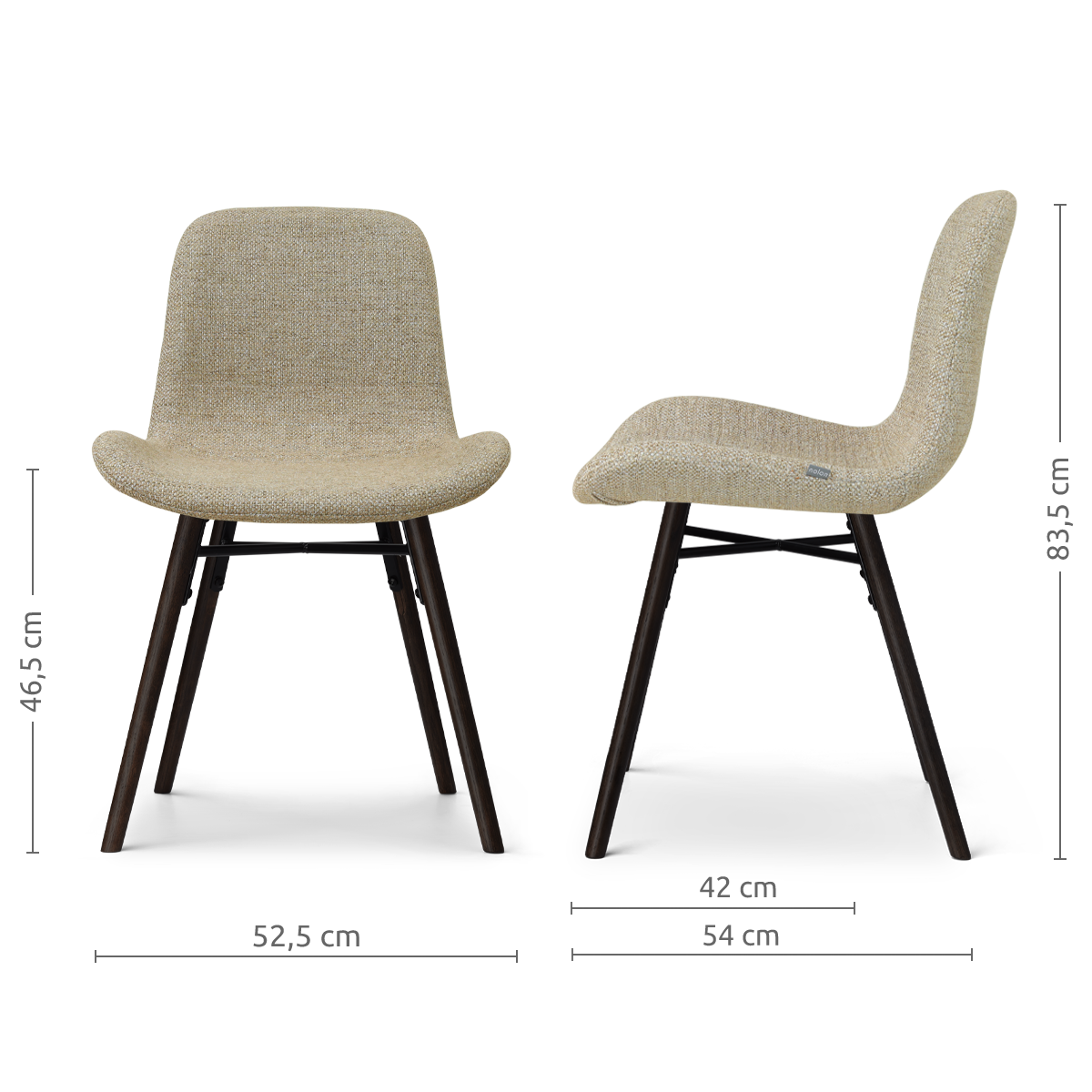 Deze eetkamerstoel combineert een prachtig houten onderstel met een elegante gestoffeerde zitting voor een gezellige uitstraling rond de eettafel. De zwarte poten van deze stoel zijn gemaakt van beukenhout en hebben een metalen kruisverbinding voor extra stabiliteit. Deze eetkamerstoel heeft een zitting van stof met een gevleugeld zitvlak, wat een zacht en comfortabel oppervlak biedt om op te zitten. Net als andere eetkamerstoelen zonder armleuningen geeft de Nena-Fé je de vrijheid je stoel gemakkelijk onder de eettafel te schuiven. Met de acht beschikbare kleuropties voor de stoffen bekleding past deze stoel in alle woonstijlen, van modern tot Scandinavisch en klassiek. Kies jouw favoriet en zet die gezellige diners maar vast in de agenda!