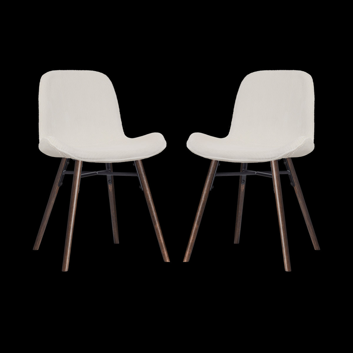 Het tijdloze design van deze set van twee eetkamerstoelen combineert hout en stof op een uiterst stijlvolle manier, waardoor deze stoelen moeiteloos passen in zowel moderne als klassieke interieurs. Het stevige onderstel is gemaakt van hoogwaardig eikenhout, waardoor stabiliteit en duurzaamheid gegarandeerd zijn. De walnoot kleur van het hout voegt een warme en authentieke uitstraling toe aan je eetkamer. Deze eetkamerstoel heeft een zitting van stof met een gevleugeld zitvlak, wat een zacht en comfortabel oppervlak biedt om op te zitten. Net als andere eetkamerstoelen zonder armleuningen geeft de Nena-Fé je de vrijheid je stoel gemakkelijk onder de eettafel te schuiven. Kies uit een assortiment van prachtige kleuren en verschillende materialen voor de stoffen bekleding, waaronder teddystof, ribstof en bouclé.