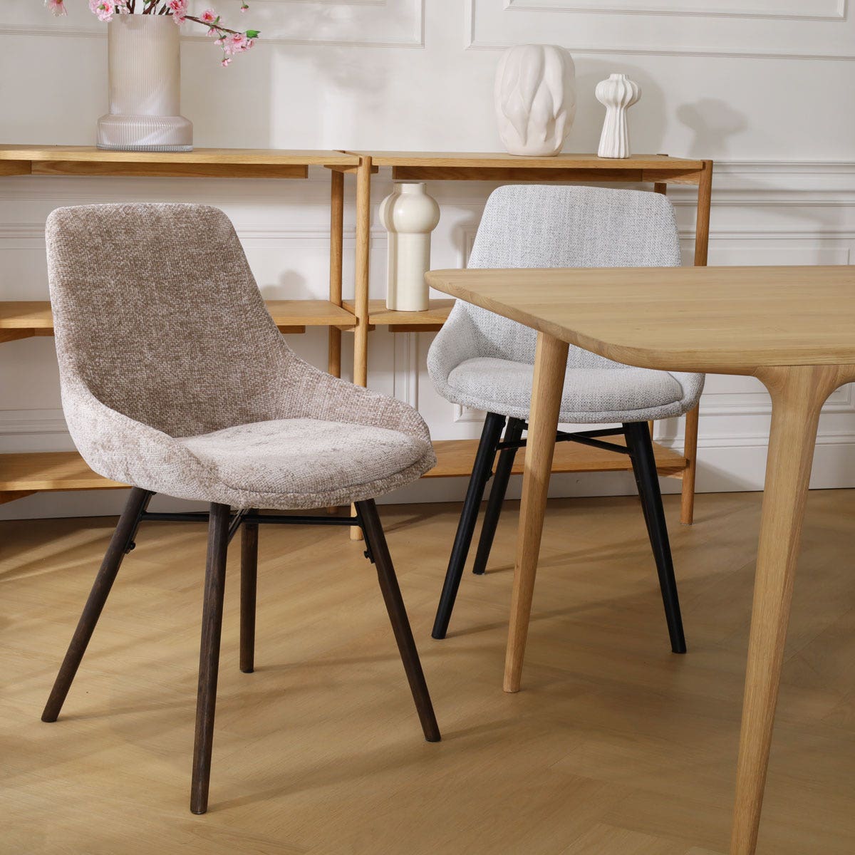Creëer een harmonieuze en warme uitstraling in je eetkamer met de Nena-Isa Japandi eetkamerstoel van Nolon.