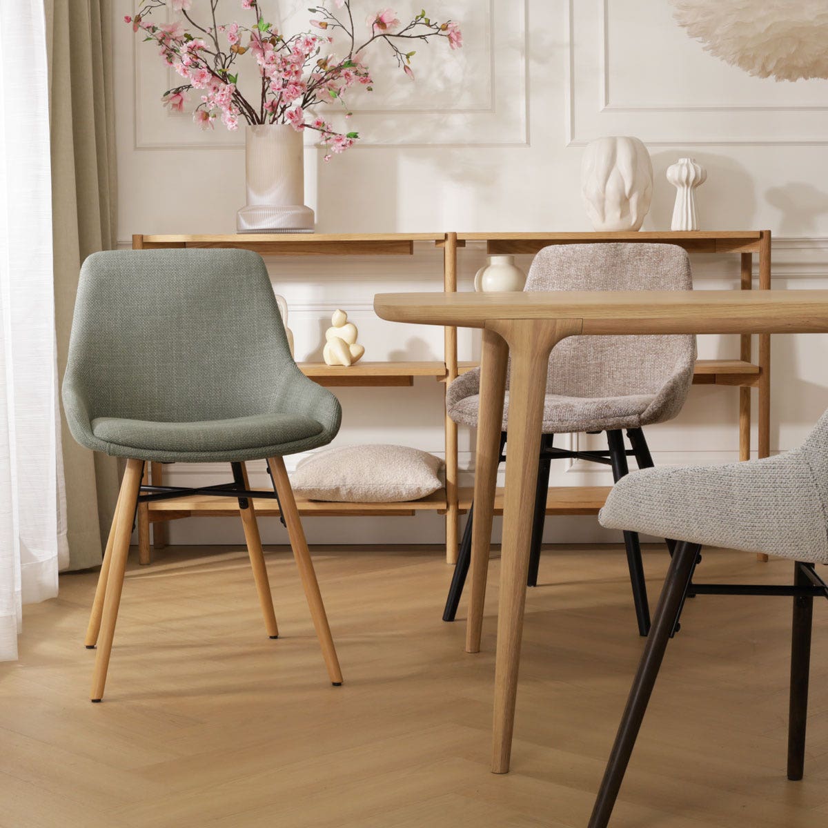 Deze stijlvolle stoel combineert de natuurlijke charme van hout met de gezellige uitstraling van stof, en past perfect binnen diverse woonstijlen zoals Scandinavisch en Japandi. De Nena-Isa stoel is volledig gestoffeerd en biedt ultiem comfort dankzij de ergonomische vorm en stevige beukenhouten poten, die extra stabiliteit krijgen door een metalen kruisverbinding. Met een zithoogte van 47 cm en een zitdiepte van 40 cm, is de stoel zonder armleuningen ontworpen om ruimte te besparen en beweging te bevorderen. Eenvoudig in elkaar te zetten zonder gespecialiseerd gereedschap, is deze stoel een praktische en stijlvolle aanwinst voor iedere eetkamer. Voor een langere levensduur van de stoffen zitting, wordt het aangeraden deze voor gebruik te impregneren, en vocht of vlekken direct met een vochtige doek te verwijderen. Vergeet niet je vloer te beschermen door speciale vloerdoppen te gebruiken als je een houten vloer hebt.