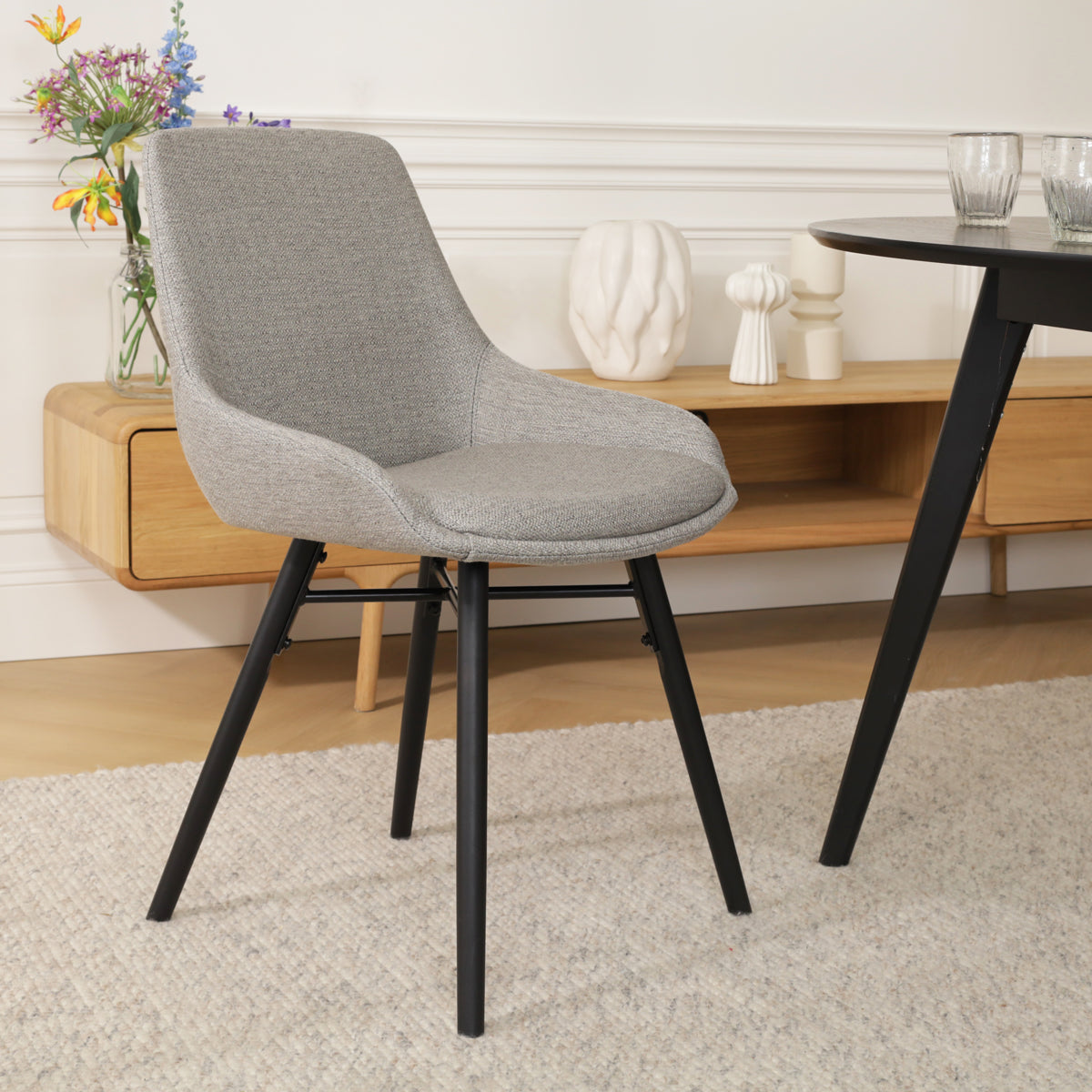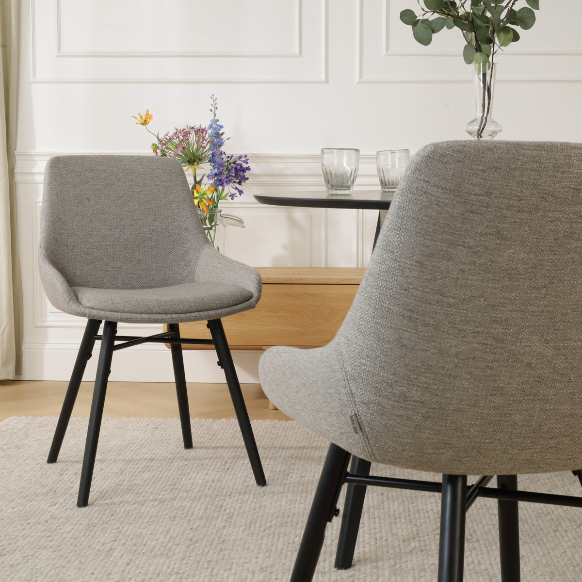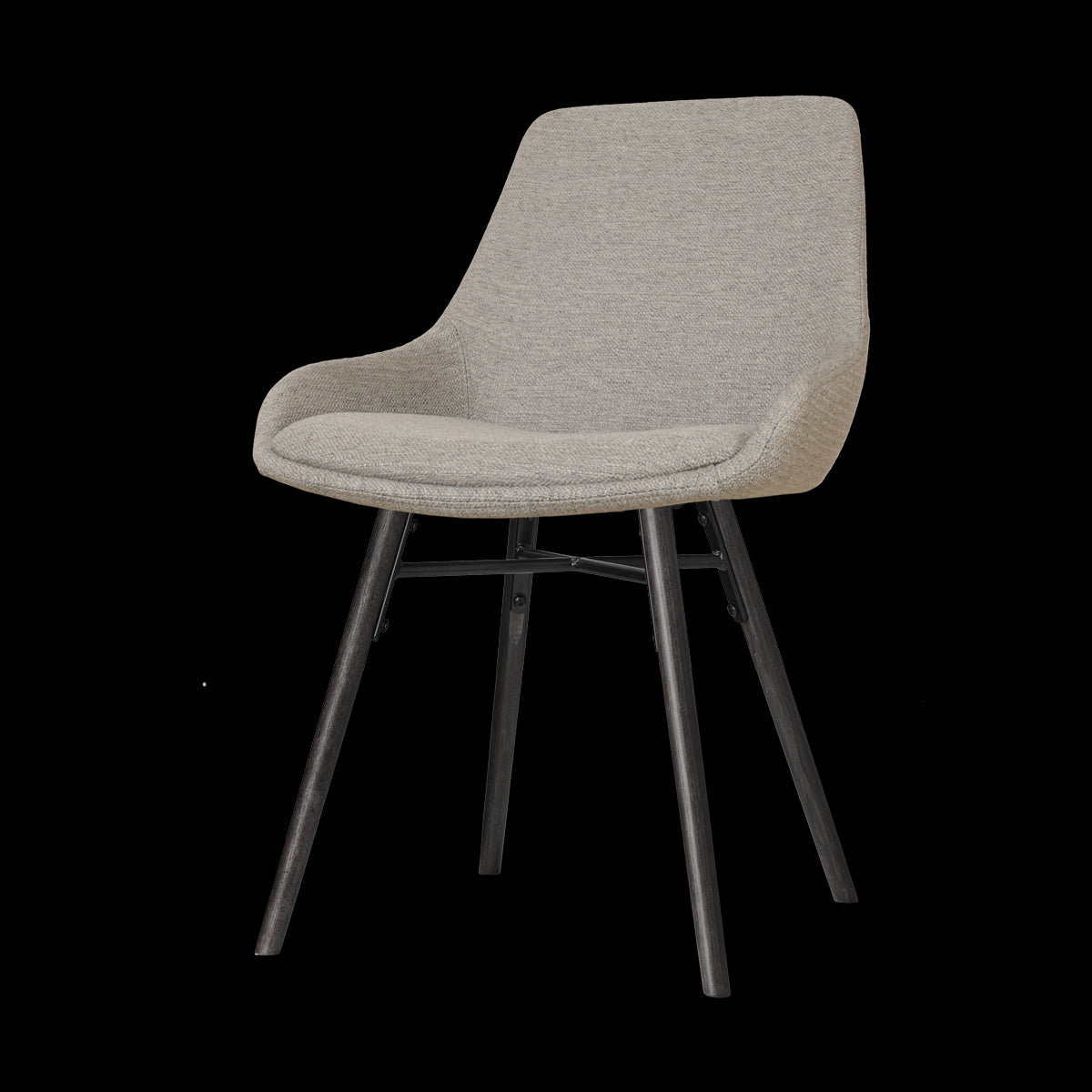 Breng een warme sfeer en functioneel design naar de eetkamer met de Nena-Isa eetkamerstoel in warm grijs, voorzien van een zwart houten onderstel.