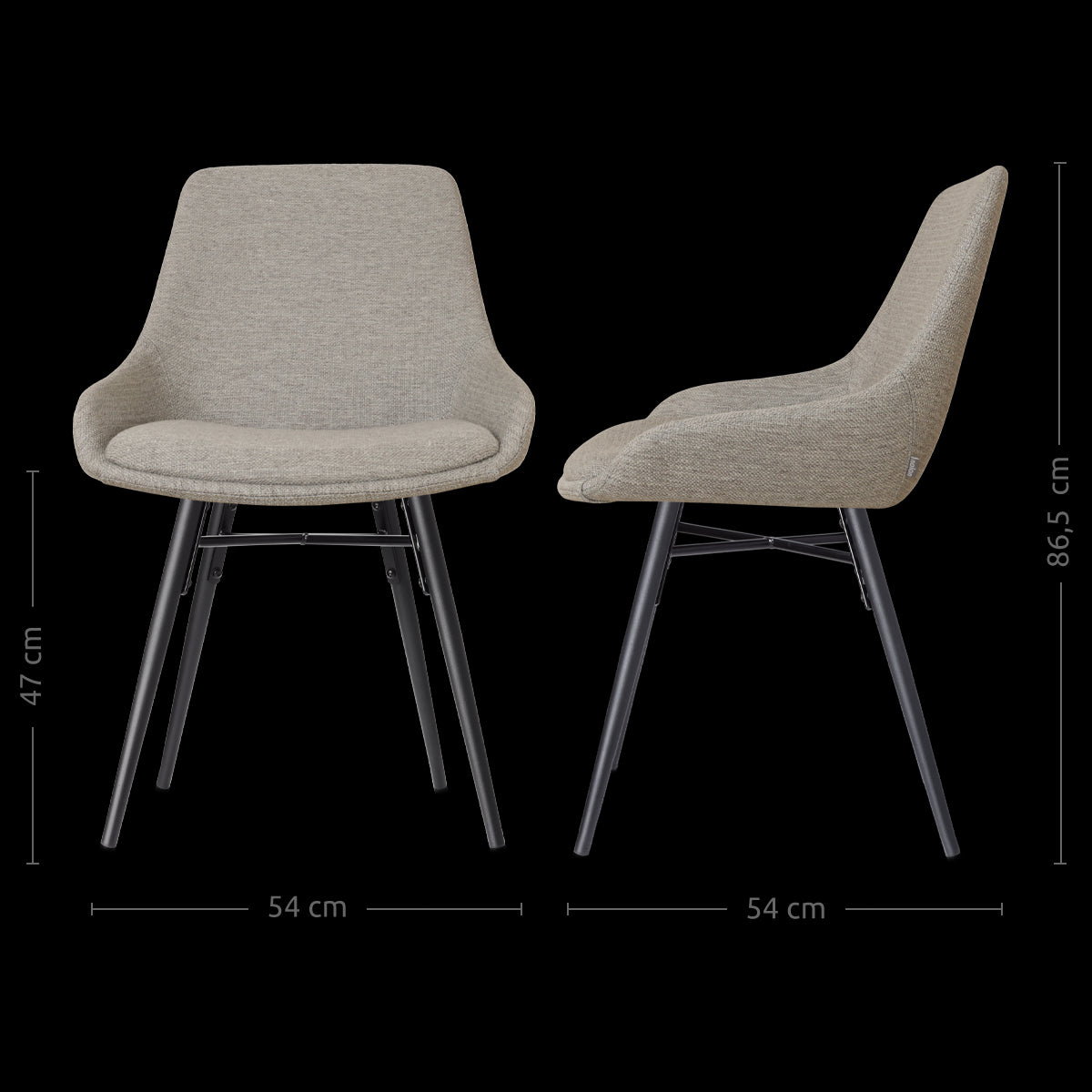 De Nena-Isa eetkamerstoel warm grijs - zwart houten onderstel is onderdeel van een mix en match collectie. Dit betekent dat zowel het onderstel als de zitting van deze stoel in diverse andere combinaties verkrijgbaar zijn. Zo is de stoel met een zwart onderstel verkrijgbaar in de kleuren bouclé taupe, bouclé beige, beige, warm grijs, groen, bruin en beige gemêleerd. Kies je voor een houten onderstel, dan zijn de kleuren bouclé beige, bouclé taupe, beige, warm grijs, groen, bruin en beige gemêleerd beschikbaar. Met een walnoot houten onderstel kun je kiezen uit bouclé beige, bouclé taupe, beige, warm grijs, groen, bruin en beige gemêleerd. Deze variëteit zorgt ervoor dat er altijd een perfecte combinatie te vinden is die aansluit bij jouw interieur en persoonlijke smaak.