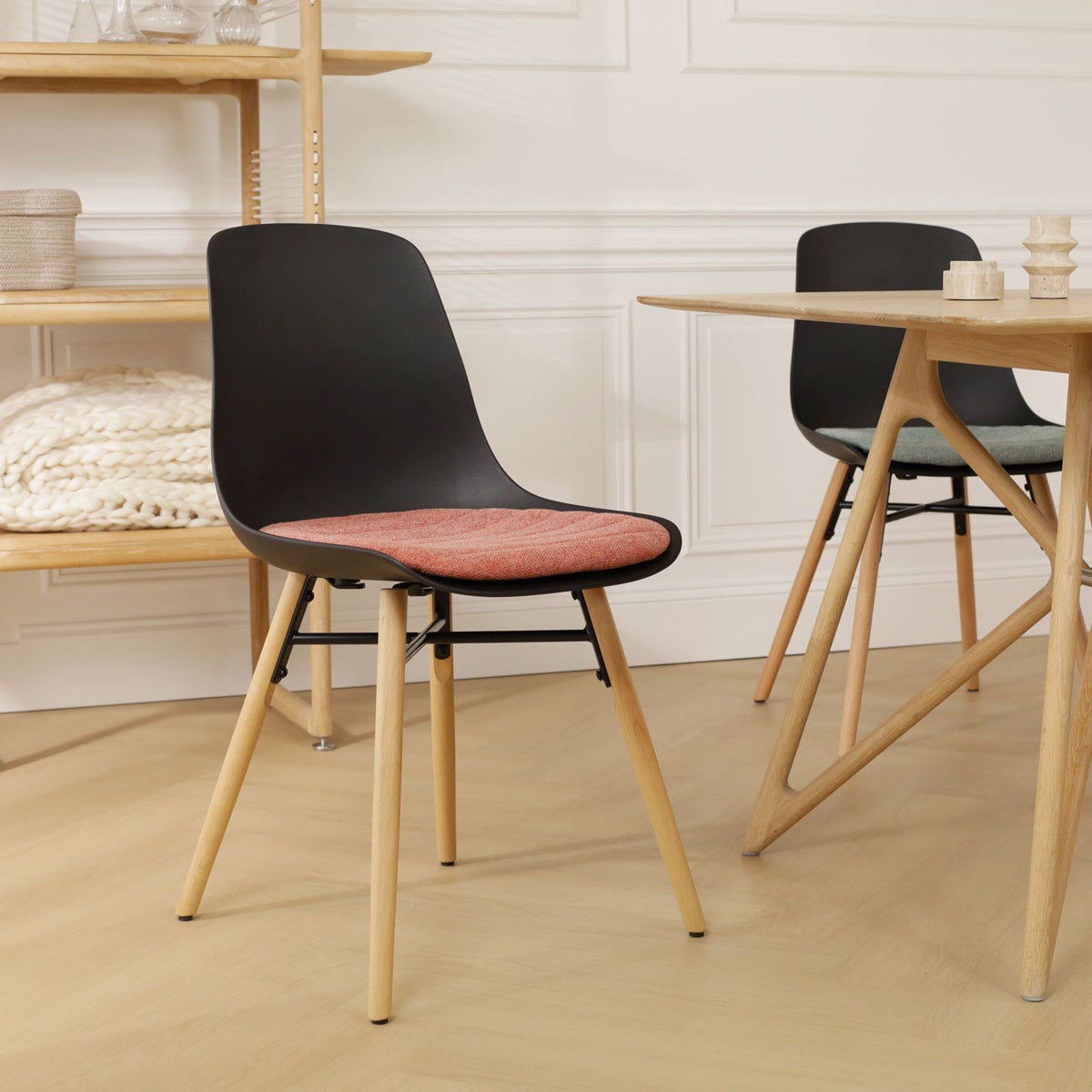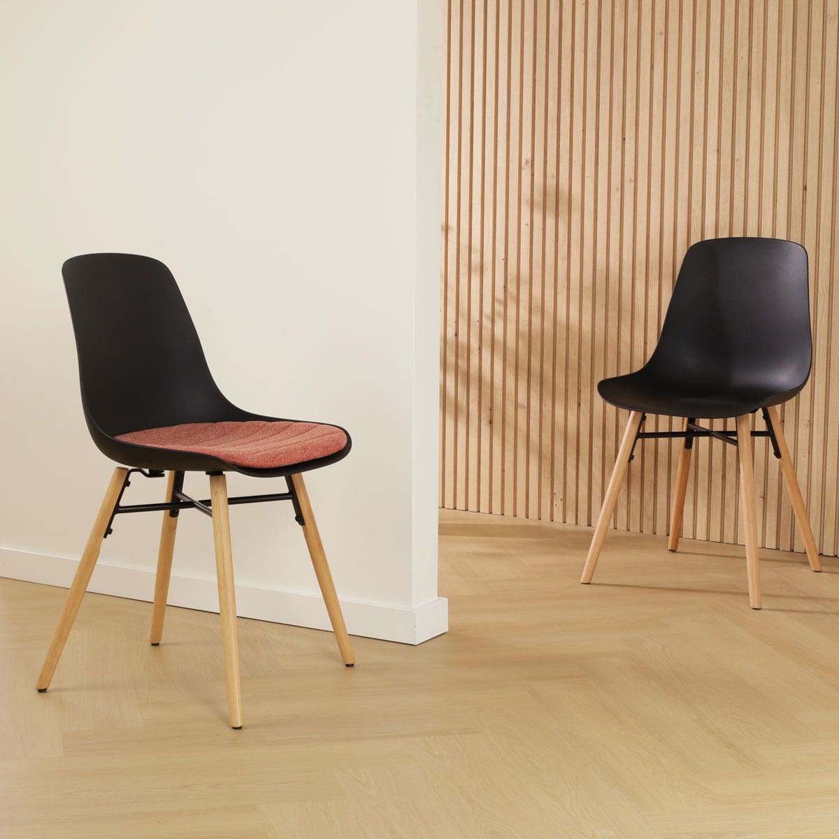 Deze eetkamerstoel combineert hout en kunststof op stijlvolle wijze in het tijdloze design. Het beukenhouten onderstel is voorzien van een zwarte metalen kruisverbinding tussen de poten en straalt moderniteit uit. De naturel houtkleur van de poten zorgt op zijn beurt voor een warme uitstraling van het geheel. De kunststof zitting geeft deze stoel een duurzaam en onderhoudsvriendelijk karakter, en is stijlvol vormgegeven met ronde vormen. Het vaste zitkussen is bekleed met zachte stof en voegt extra comfort toe aan je zitervaring tijdens lange maaltijden of gezellige avonden. De Nena-Liv eetkamerstoel maakt deel uit van de uitgebreide collectie Nolon eetkamerstoelen, waarbij zowel het onderstel als de zitting beschikbaar zijn in diverse combinaties. Voor extra zitcomfort kun je deze eetkamerstoel combineren met het Fem zitkussen van Nolon.