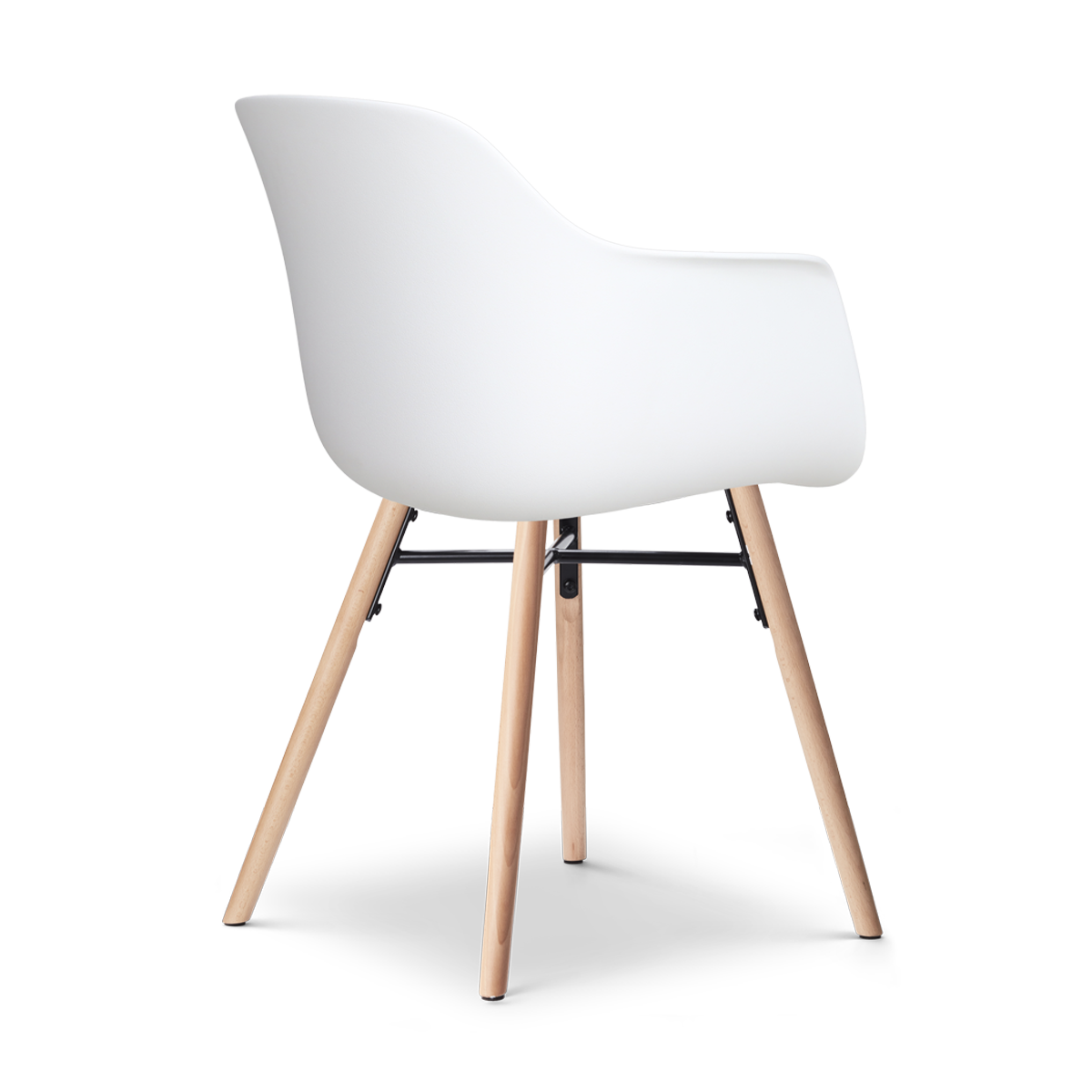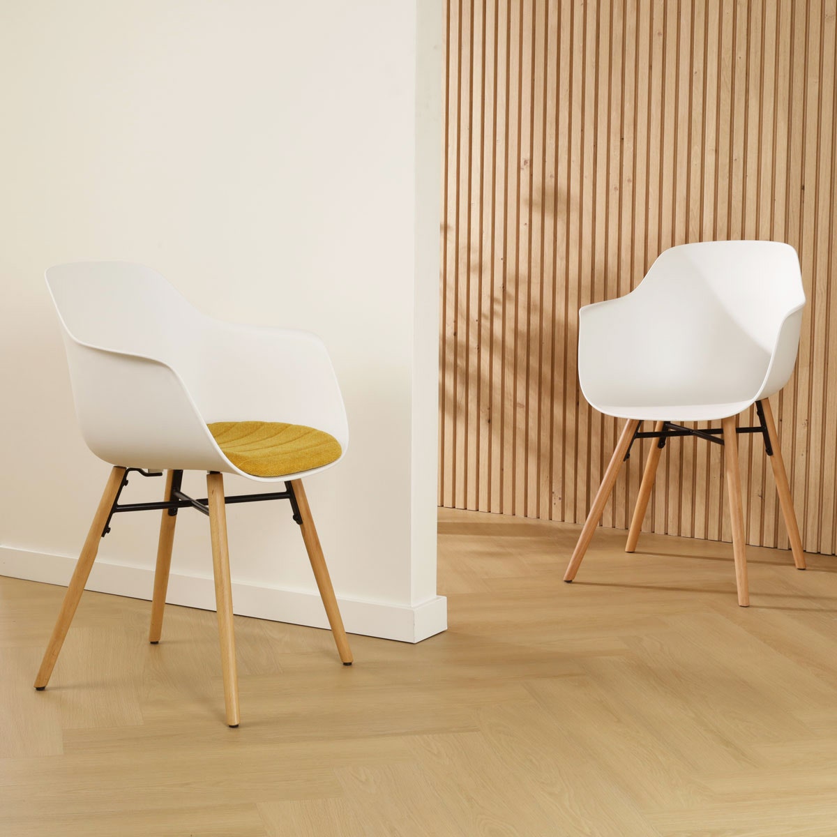 Een praktische en tegelijkertijd sfeervolle eetruimte creëer je met de Nena-Liz eetkamerstoel met kunststof zitting en armleuningen.