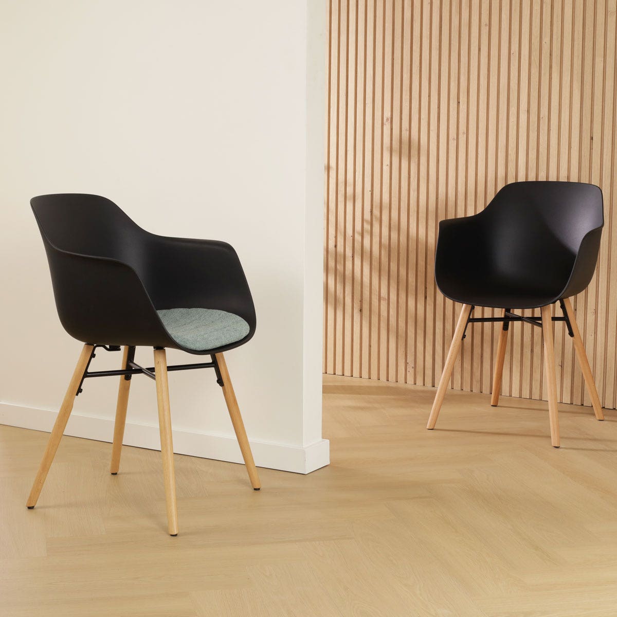 Een praktische en tegelijkertijd sfeervolle eetruimte creëer je met de Nena-Liz eetkamerstoel met kunststof zitting en armleuningen.