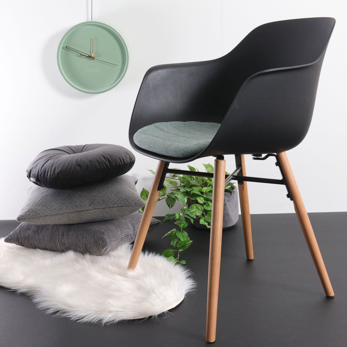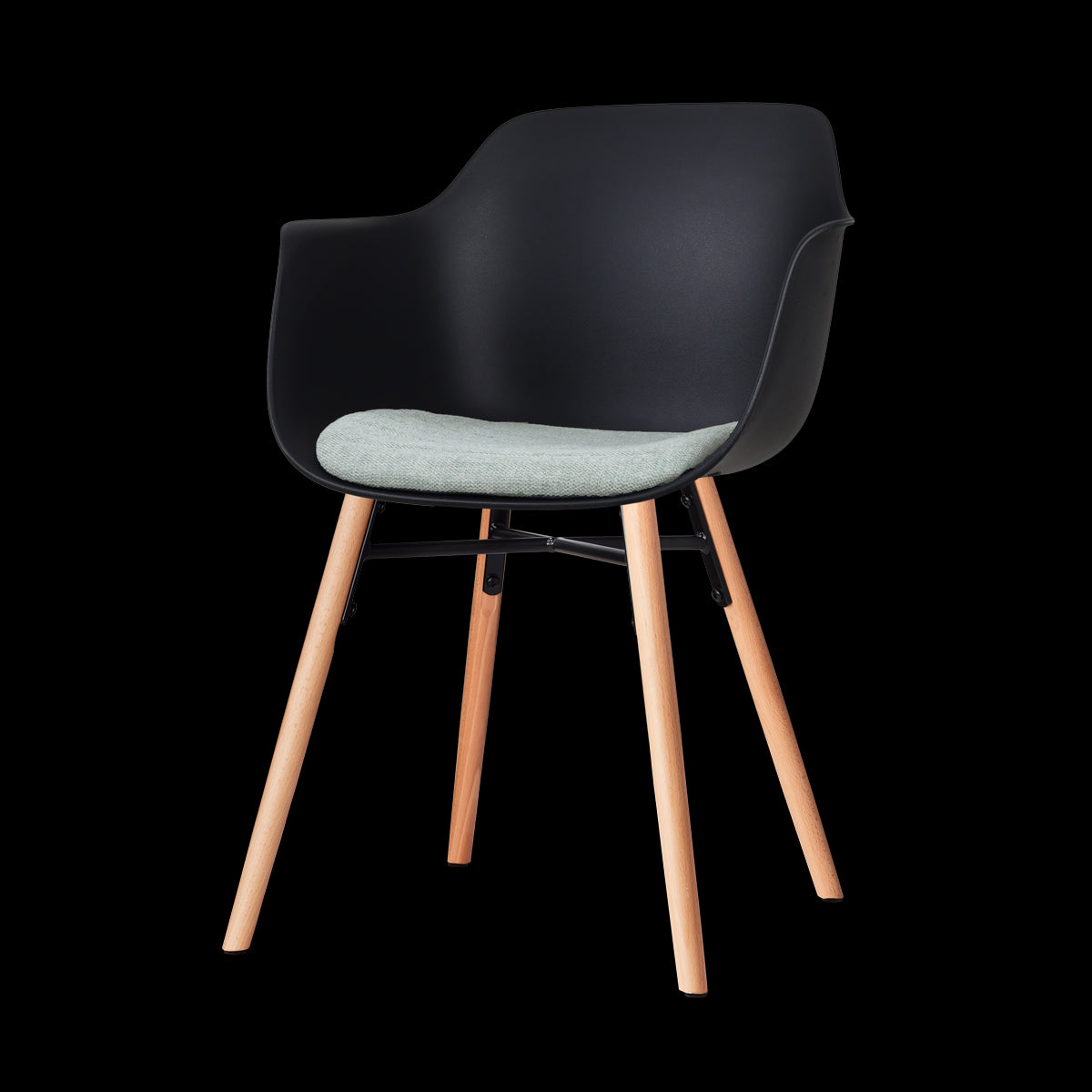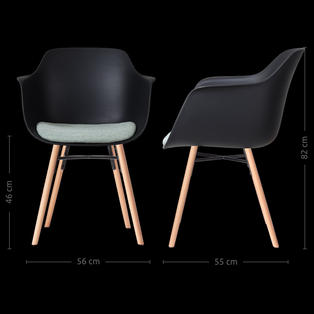 De ergonomische vorm en het doordachte design maken van de Nena-Liz de ideale keuze voor je eethoek. Deze eetkamerstoel combineert een functionele kunststof zitting met een sfeervol houten onderstel. De beukenhouten poten hebben een naturel houtkleur en worden verstevigd door een zwarte metalen kruisverbinding bovenin. De zitting is gemaakt van door en door gekleurd kunststof, waardoor de stoel bestand is tegen krassen en beschadigingen. Dankzij de flexibele kunststof kuip en de armleuningen kan je een ontspannen zithouding aannemen, terwijl het vaste zitkussen bekleed met hoogwaardige stof ervoor zorgt dat je lekker zacht zit. Het leuke aan de Nena-Liz eetkamerstoel is dat je zelf kan bepalen hoe hij eruitziet. Maak een keuze uit de witte of zwarte zitting en kies uit vijf verschillende kleuren stof voor het vaste zitkussen om deze stoel helemaal aan jouw wensen te laten voldoen.