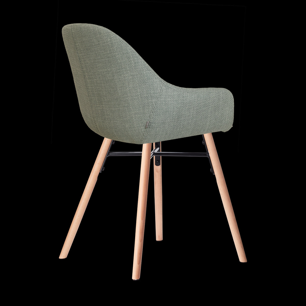 De Nena-Mae eetkamerstoel groen met houten poten van Nolon is onderdeel van een mix en match collectie. Dit betekent dat zowel het onderstel als de zitting van deze stoel in diverse andere combinaties verkrijgbaar zijn. De Mae zitting is verkrijgbaar in verschillende stoffen en kleuren, maar het houten Nena onderstel kan ook gecombineerd worden met één van de andere zittingen van Nolon. De Mae zitting kan juist weer worden gecombineerd met alle andere onderstellen, zoals een draaibaar onderstel of een wit metalen onderstel. Bovendien is het houten Nena onderstel verkrijgbaar in drie kleuren: naturel, walnoot en zwart.