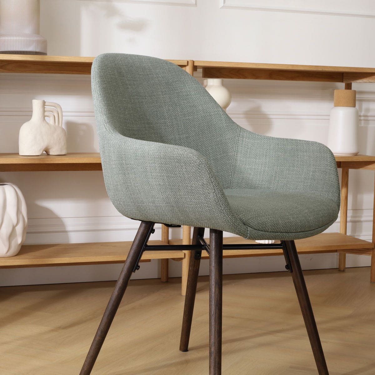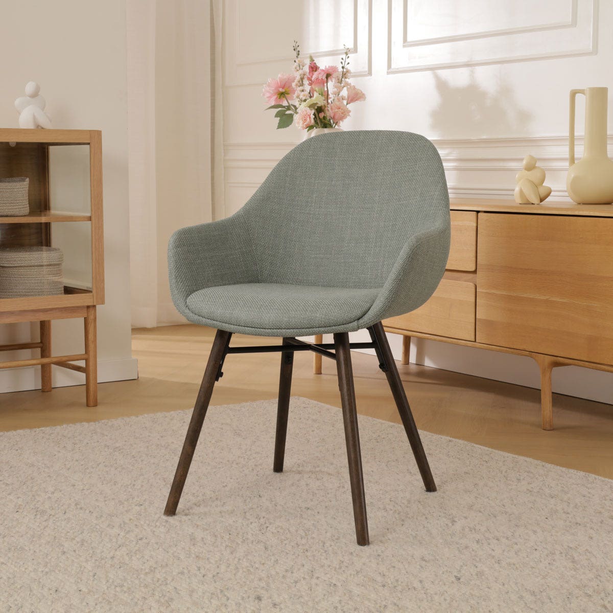 De ultieme combinatie van comfort en stijl komt tot leven in de elegante Nena-Mae eetkamerstoel met walnoot houten poten en armleuningen van Nolon.