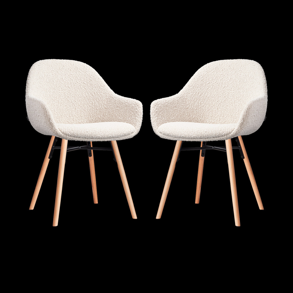 Als je op zoek bent naar een set van twee stijlvolle eetkamerstoelen die niet alleen een warme uitstraling aan je eetruimte geven maar ook uitstekend comfort bieden, dan is de Nena-Mae precies wat je zoekt. Deze eetkamerstoel is ontworpen met een comfortabele zitting voorzien van armleuningen, zodat je ontspannen aan tafel kan zitten. De beukenhouten poten in naturel houtkleur zorgen op hun beurt voor stabiliteit en versterken de warme, natuurlijke uitstraling van de stoel. Maak een keuze uit de verschillende materialen en kleuren zitting om de Nena-Mae eetkamerstoel helemaal in jouw interieur te laten passen.