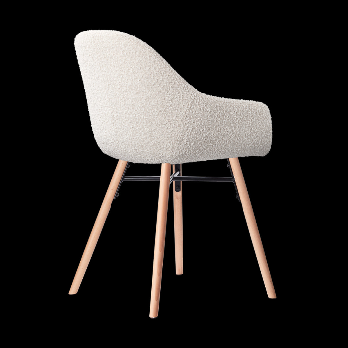 De Nena-Mae eetkamerstoel van Nolon is een moderne kuipstoel met armleuningen en prachtige houten poten.
