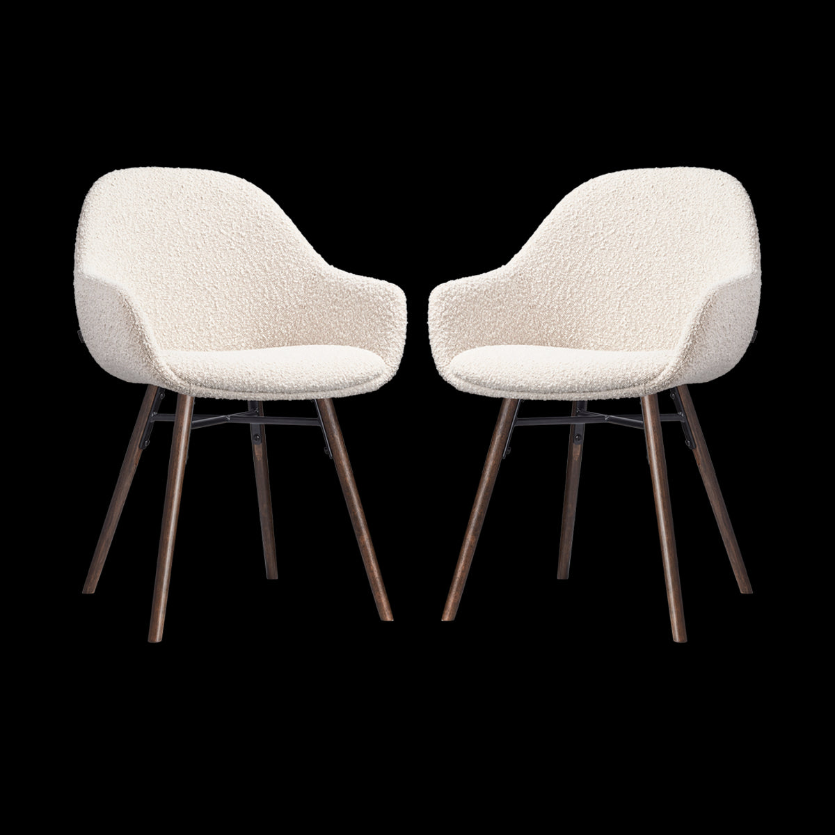 De ultieme combinatie van comfort en stijl komt tot leven in de set van twee elegante Nena-Mae eetkamerstoelen met houten poten en armleuningen van Nolon.
