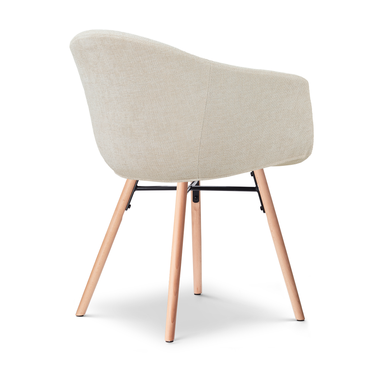 De Nena-Otis cottonbeige straalt warmte en comfort uit dankzij de zachte beige stoffering. De oplopende armleuningen zorgen voor een prettige zit, ideaal voor lange diners of gezellige avonden aan tafel. De naturel beukenhouten poten maken het ontwerp compleet en voegen een lichte, natuurlijke sfeer toe aan je interieur.